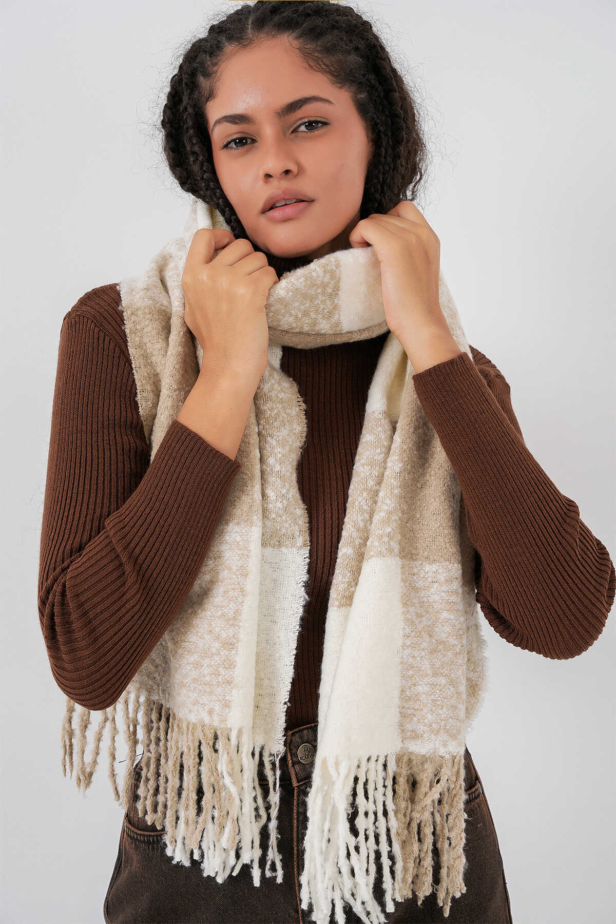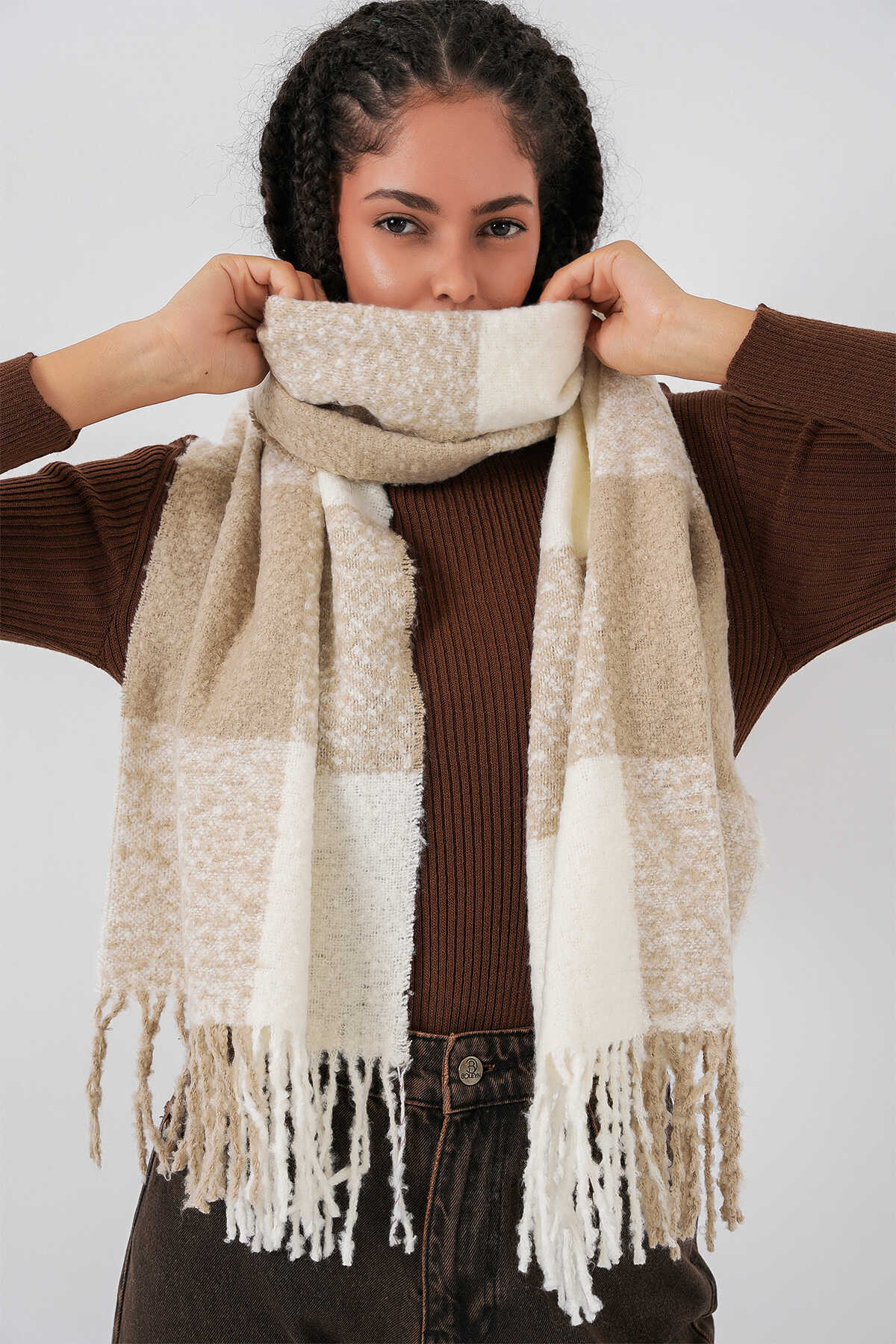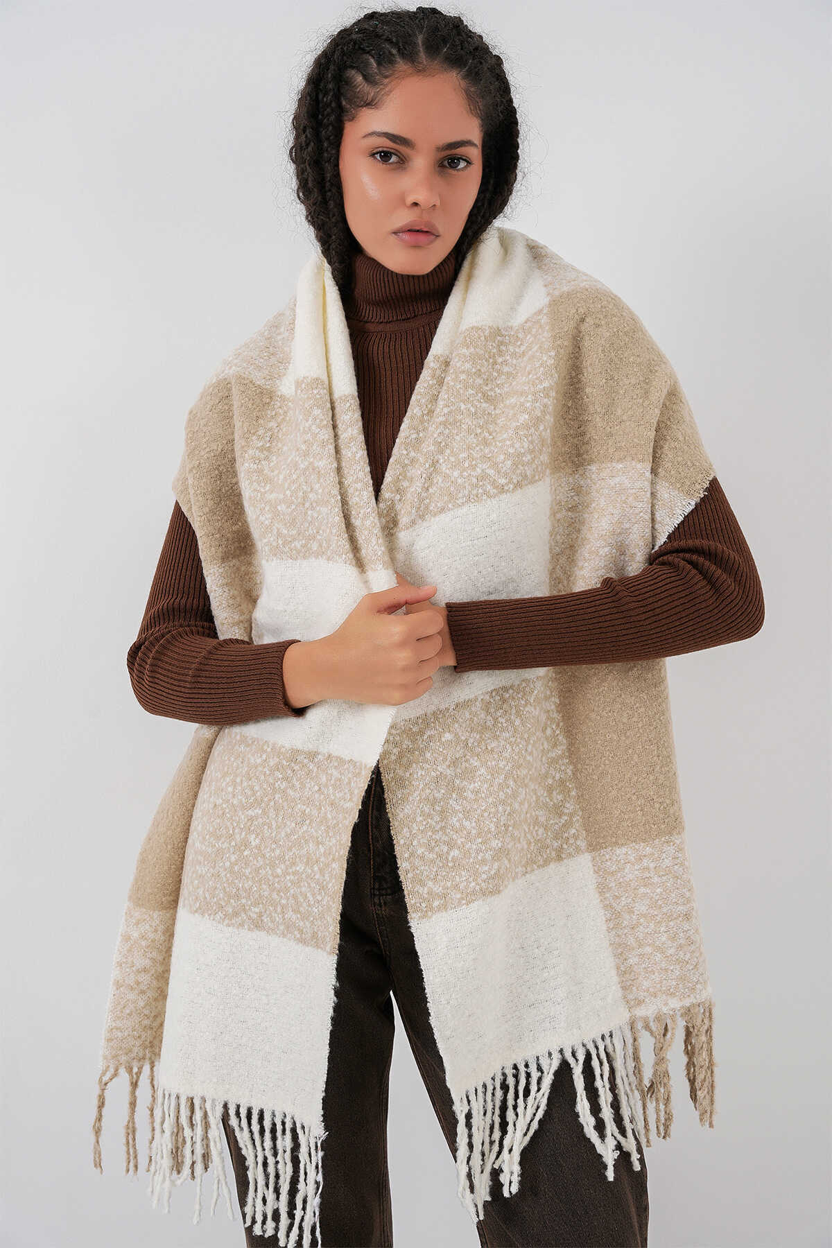Kadın Yumuşak Dokulu Kalın Şal Atkı 15951 - Vizon - Kombin