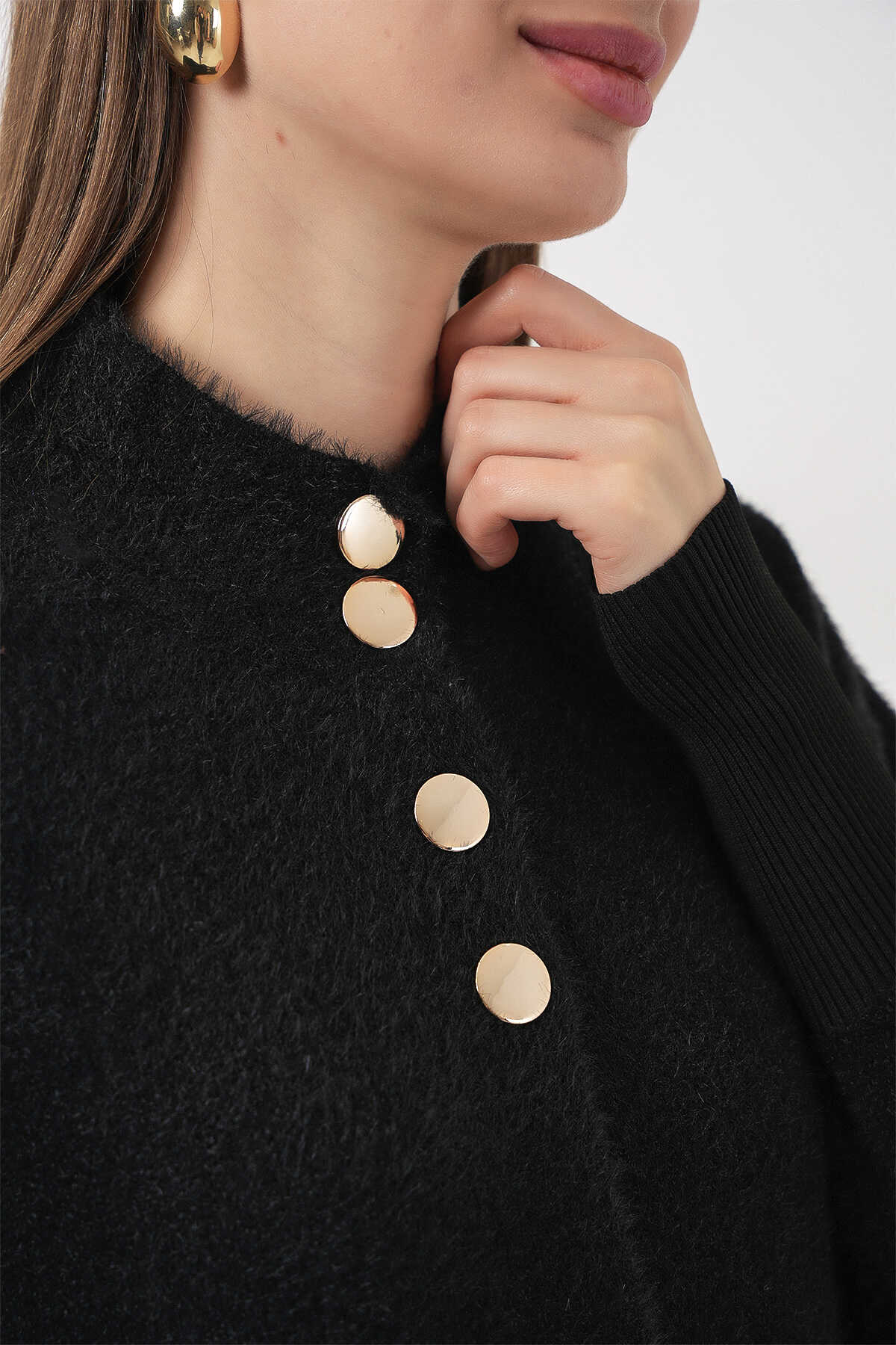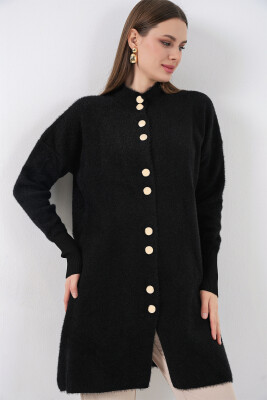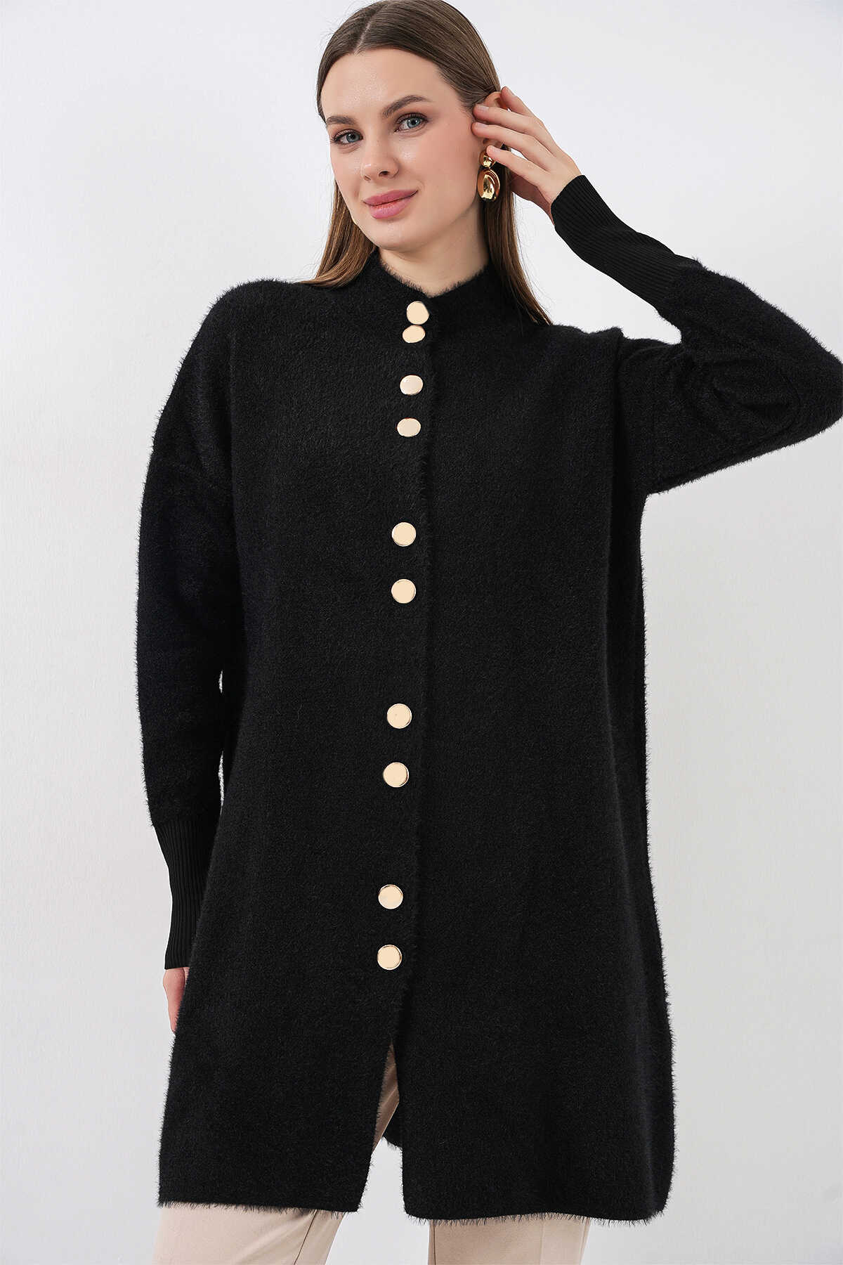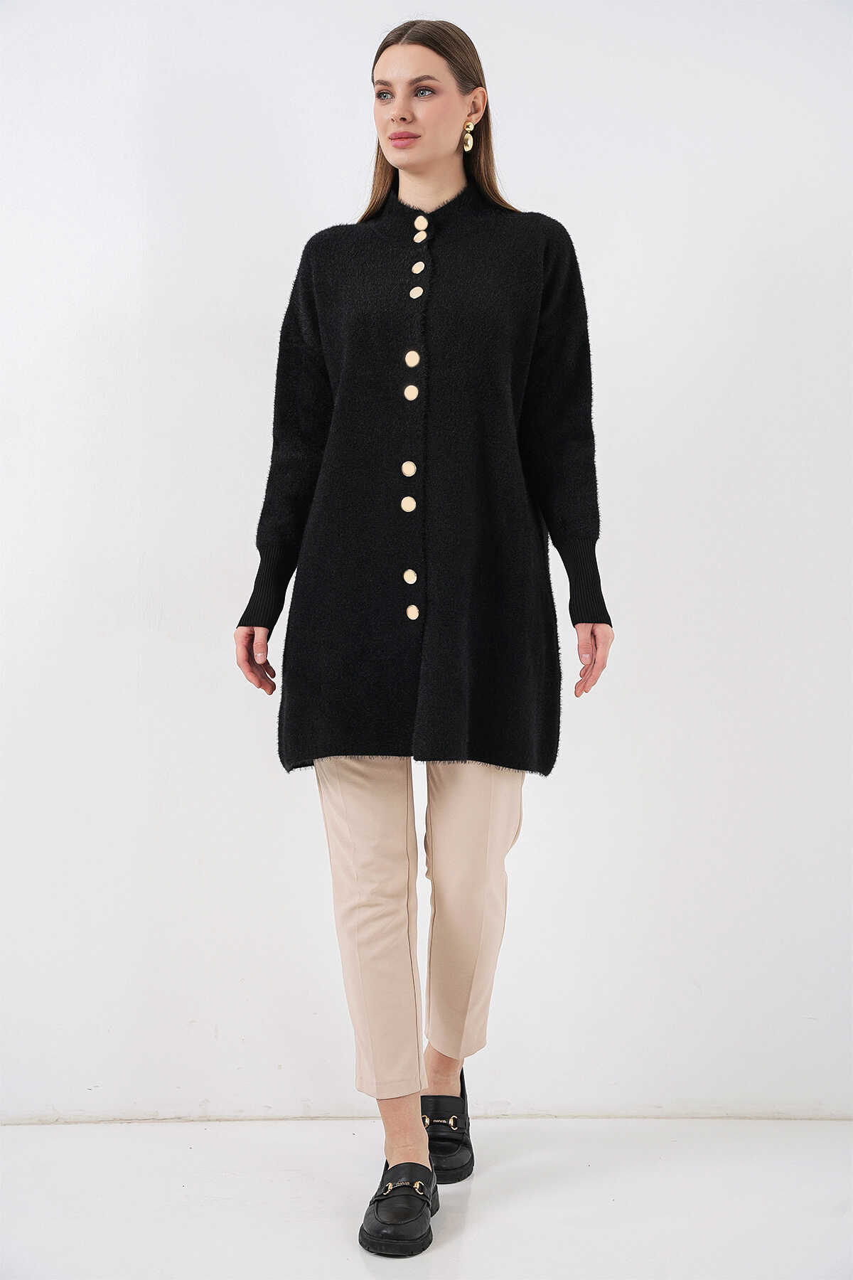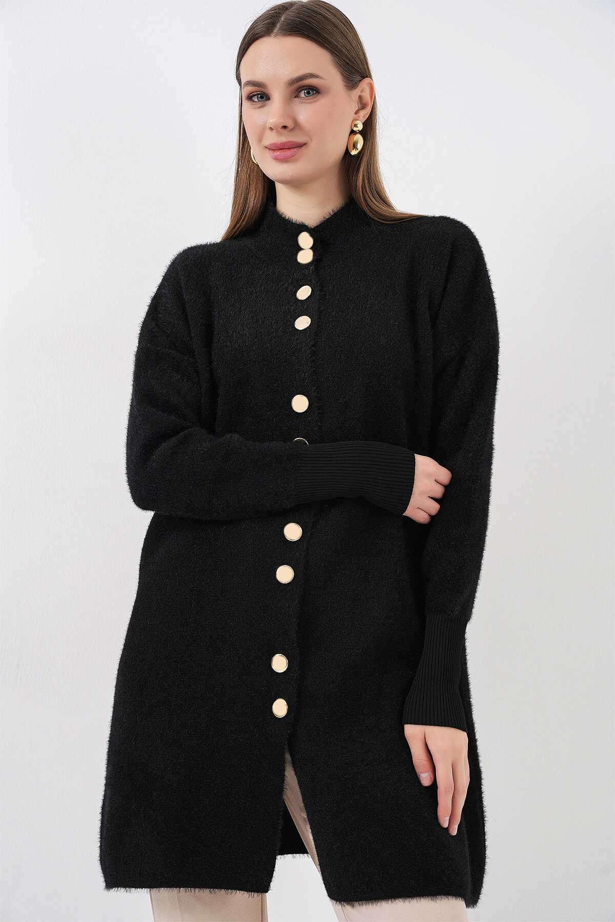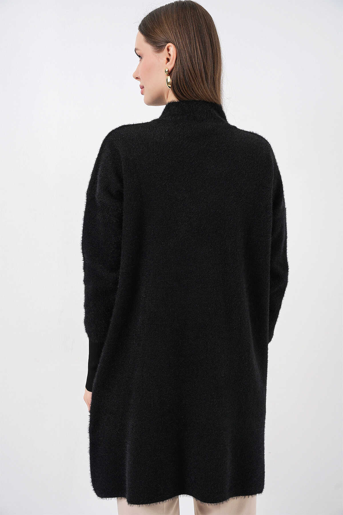 Kadın Yumuşak Dokulu Uzun Triko Hırka 15953 - Siyah - Kombin