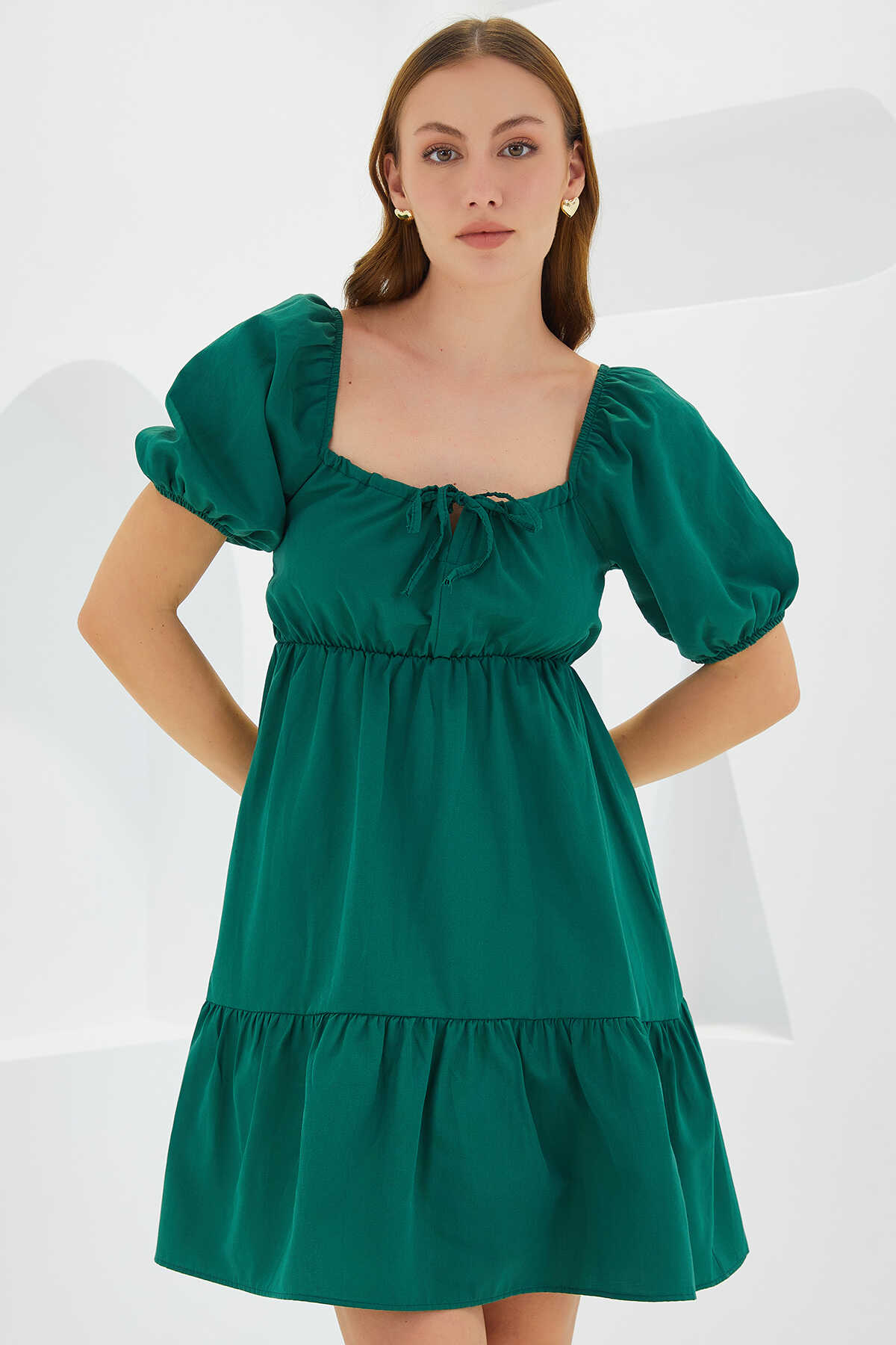 2351 Kloş Poplin Elbise - Y.Zümrüt - Kombin