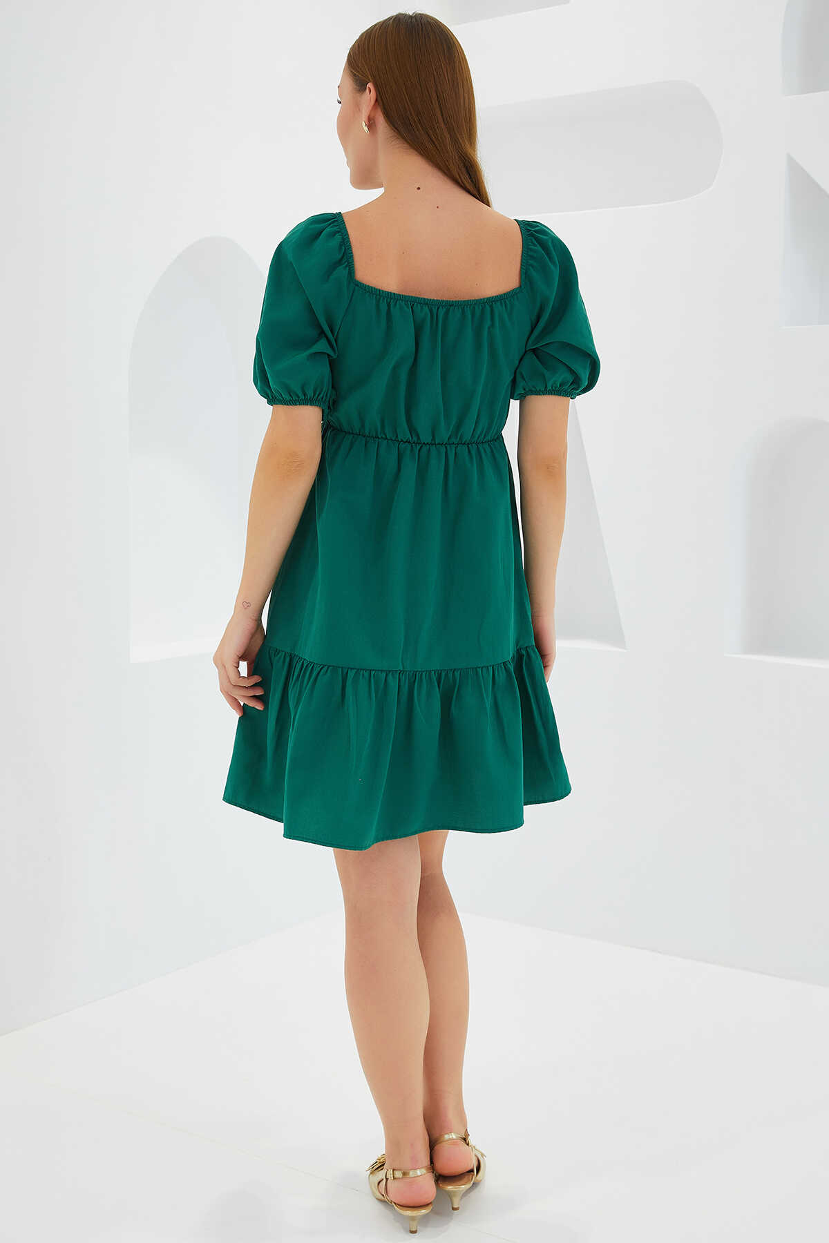 2351 Kloş Poplin Elbise - Y.Zümrüt