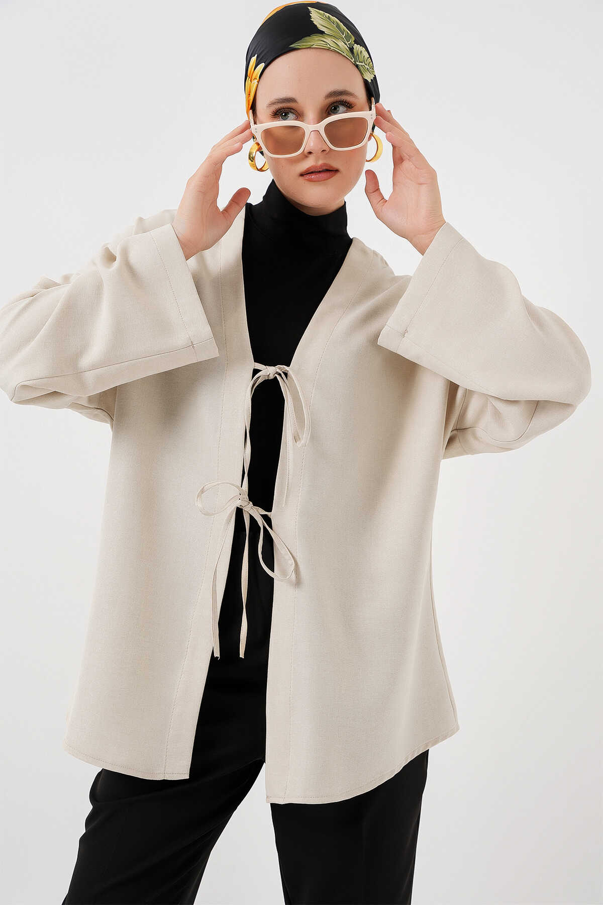 Keten Tesettür Kimono 5968 - Ekru - Kombin