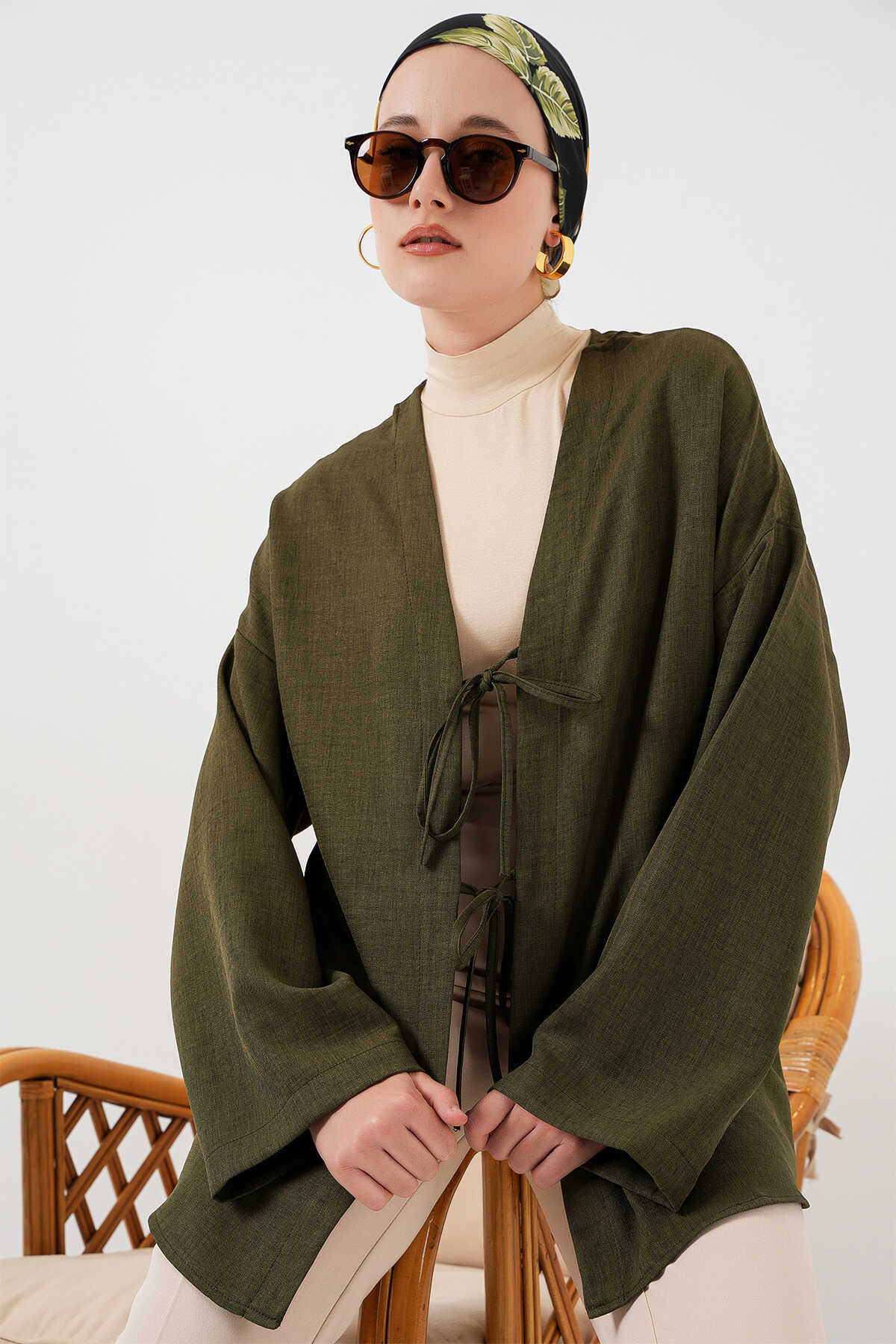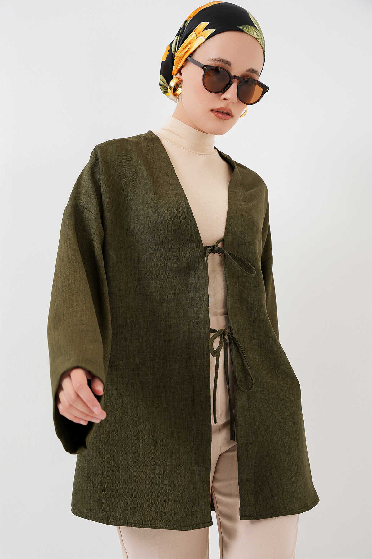 Keten Tesettür Kimono 5968 - Haki