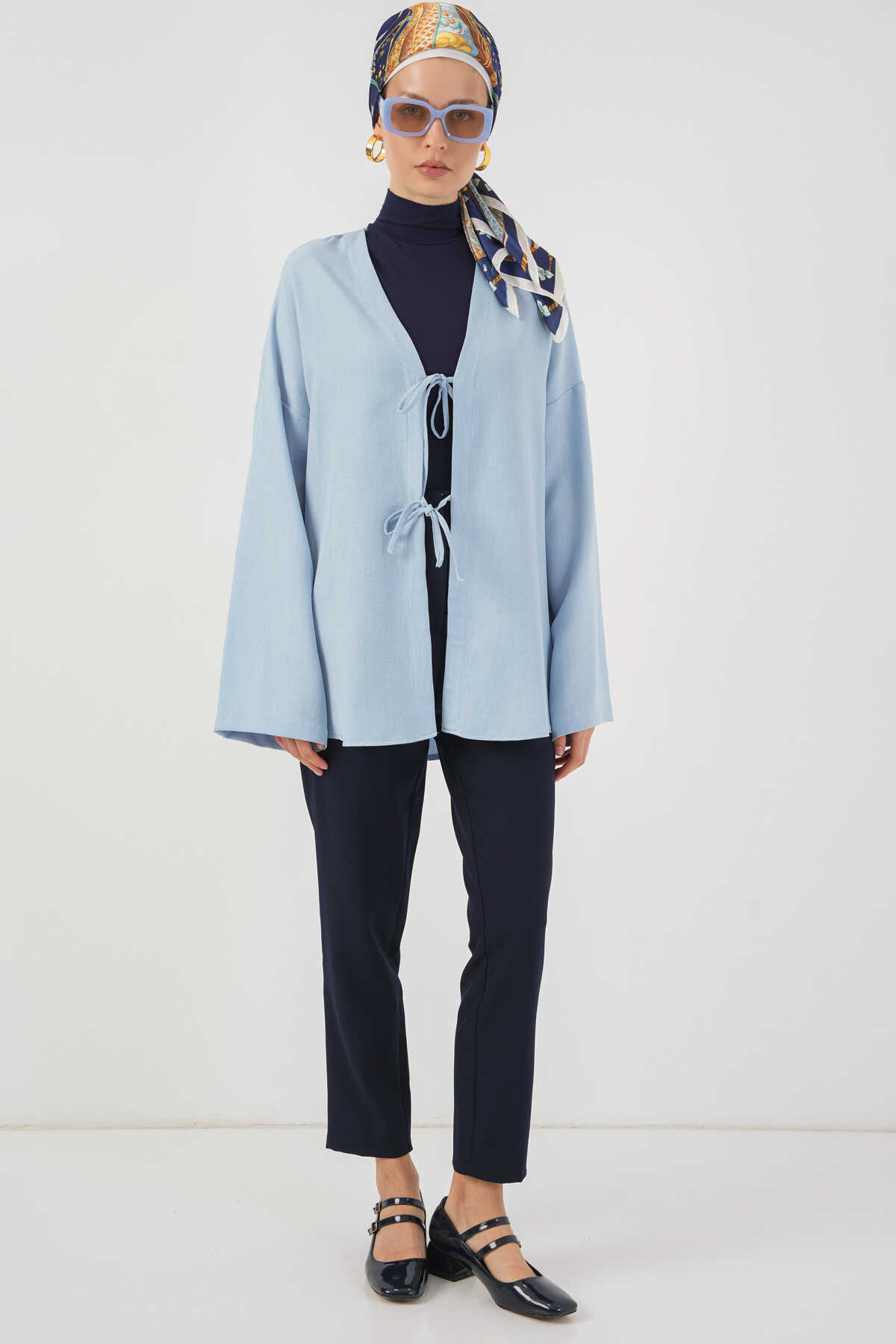Keten Tesettür Kimono 5968 - Mavi - Kombin