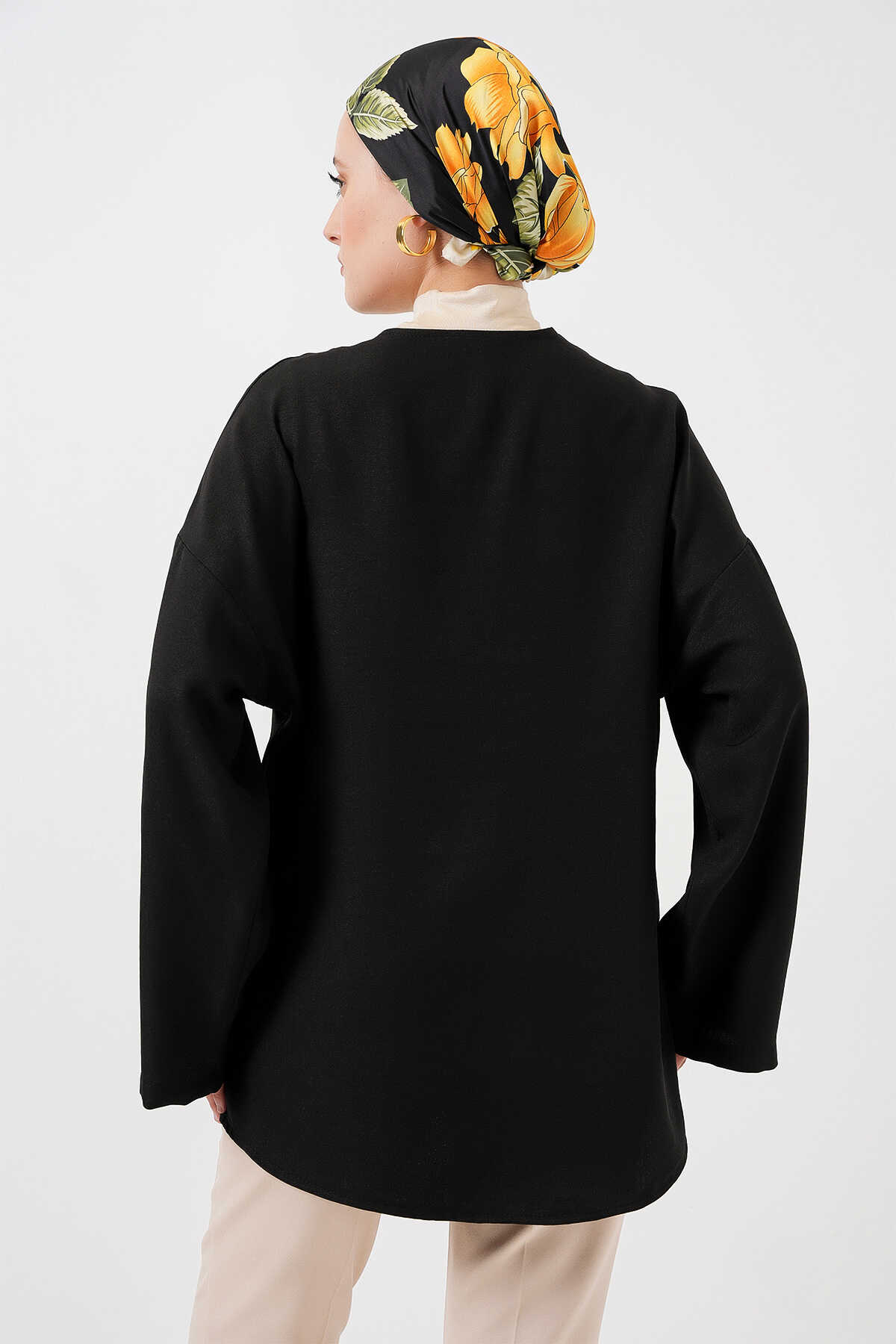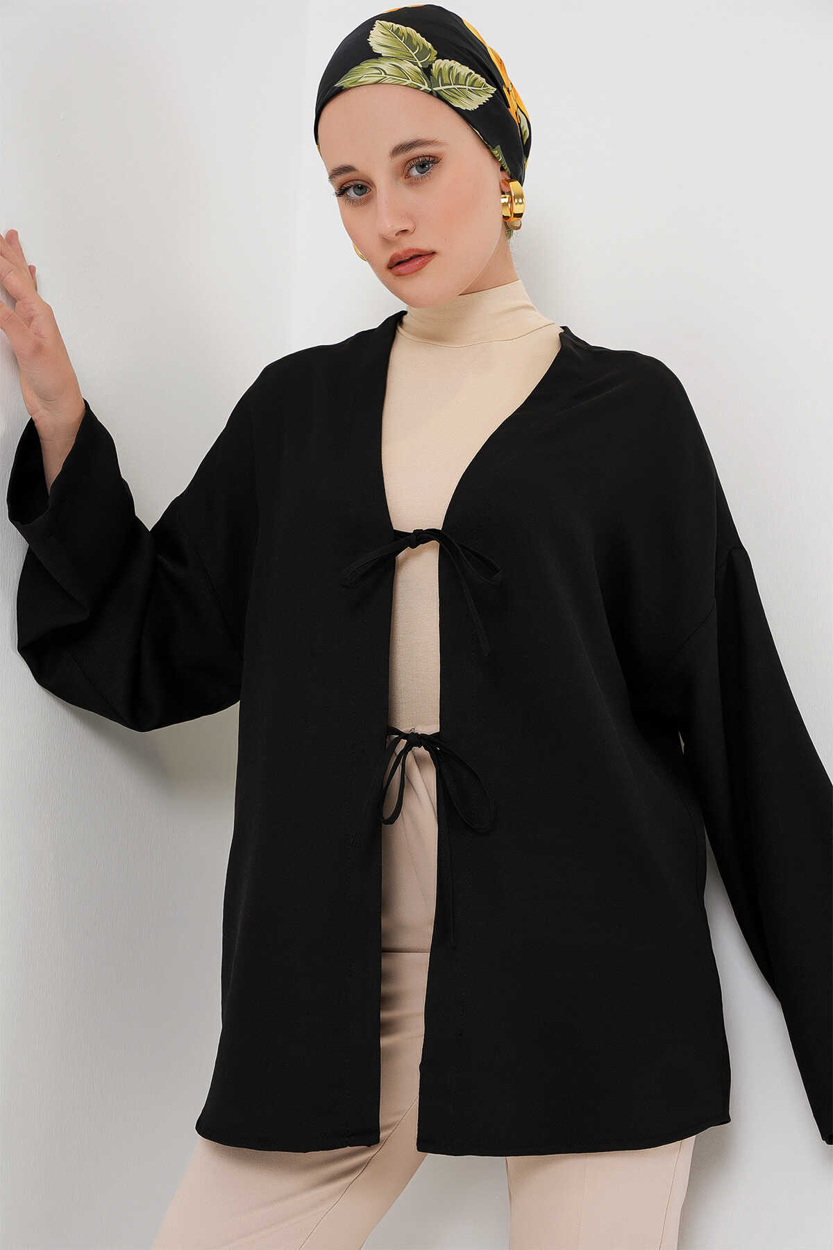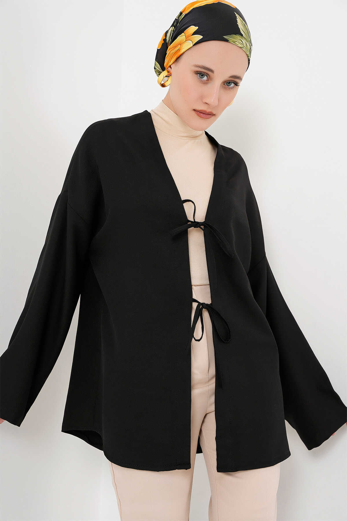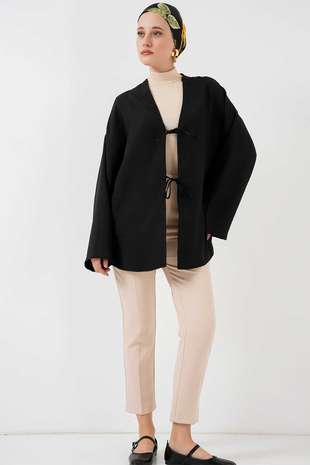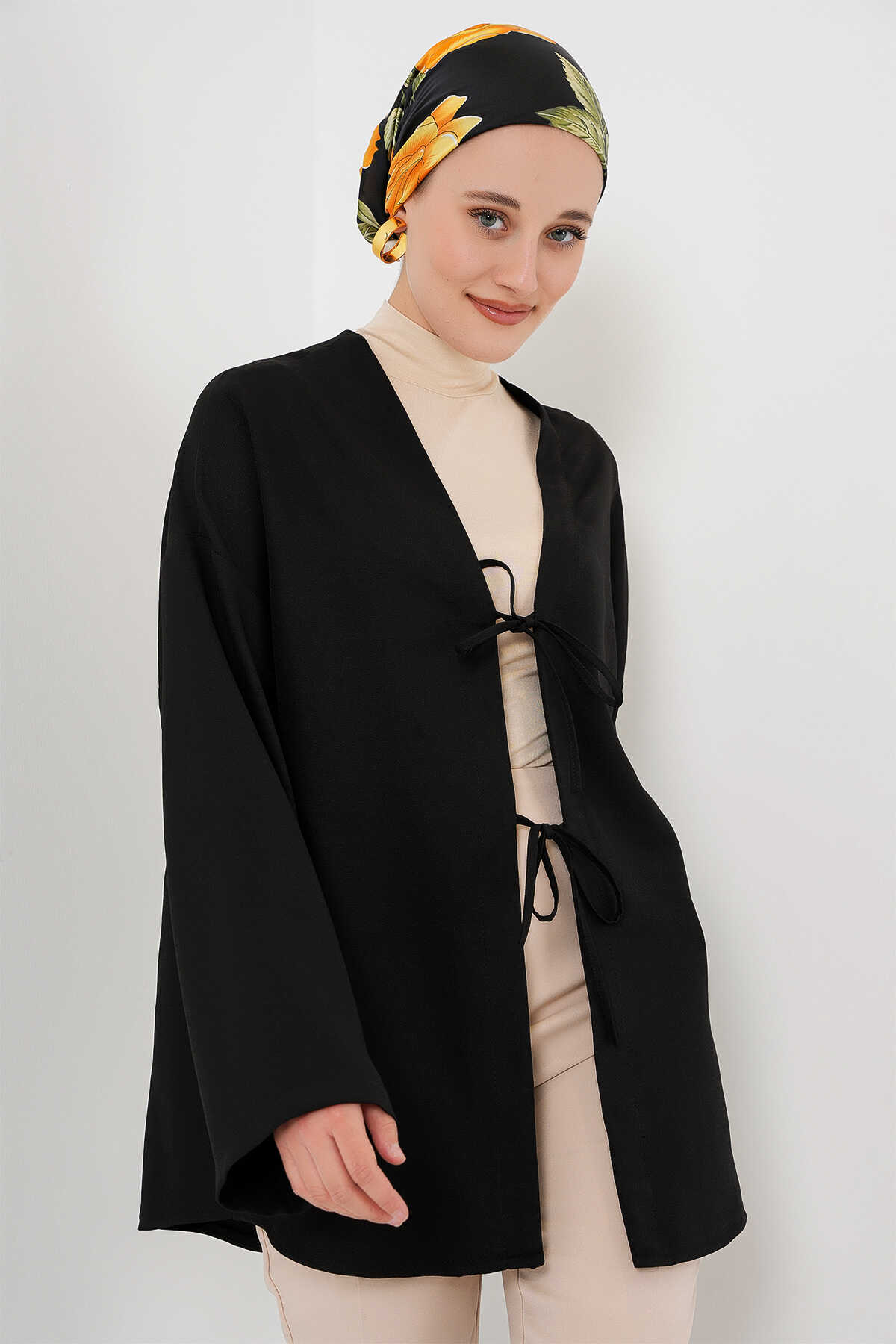 Keten Tesettür Kimono 5968 - Siyah - Kombin