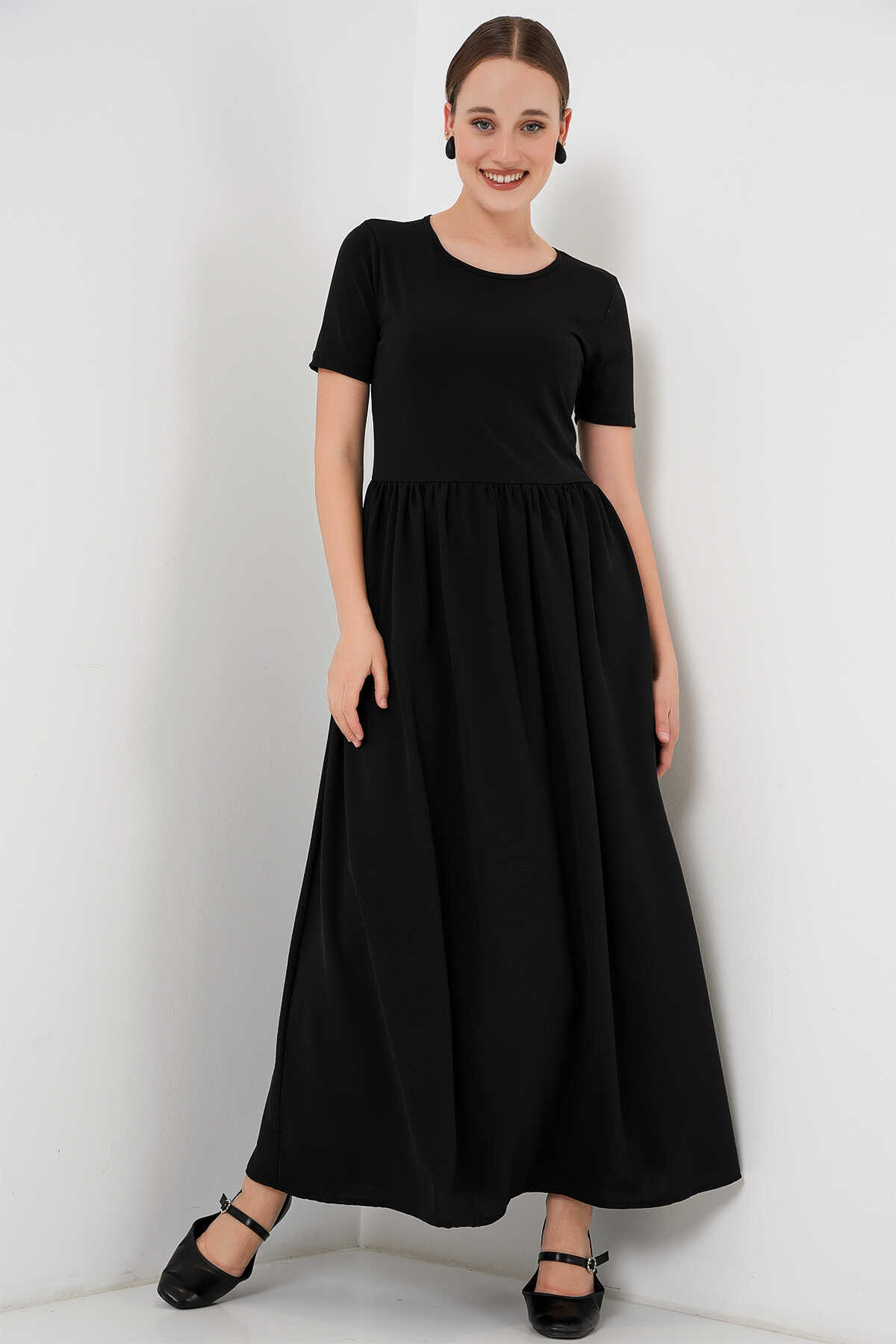 Kısa Kol Uzun Elbise 2551 - Siyah
