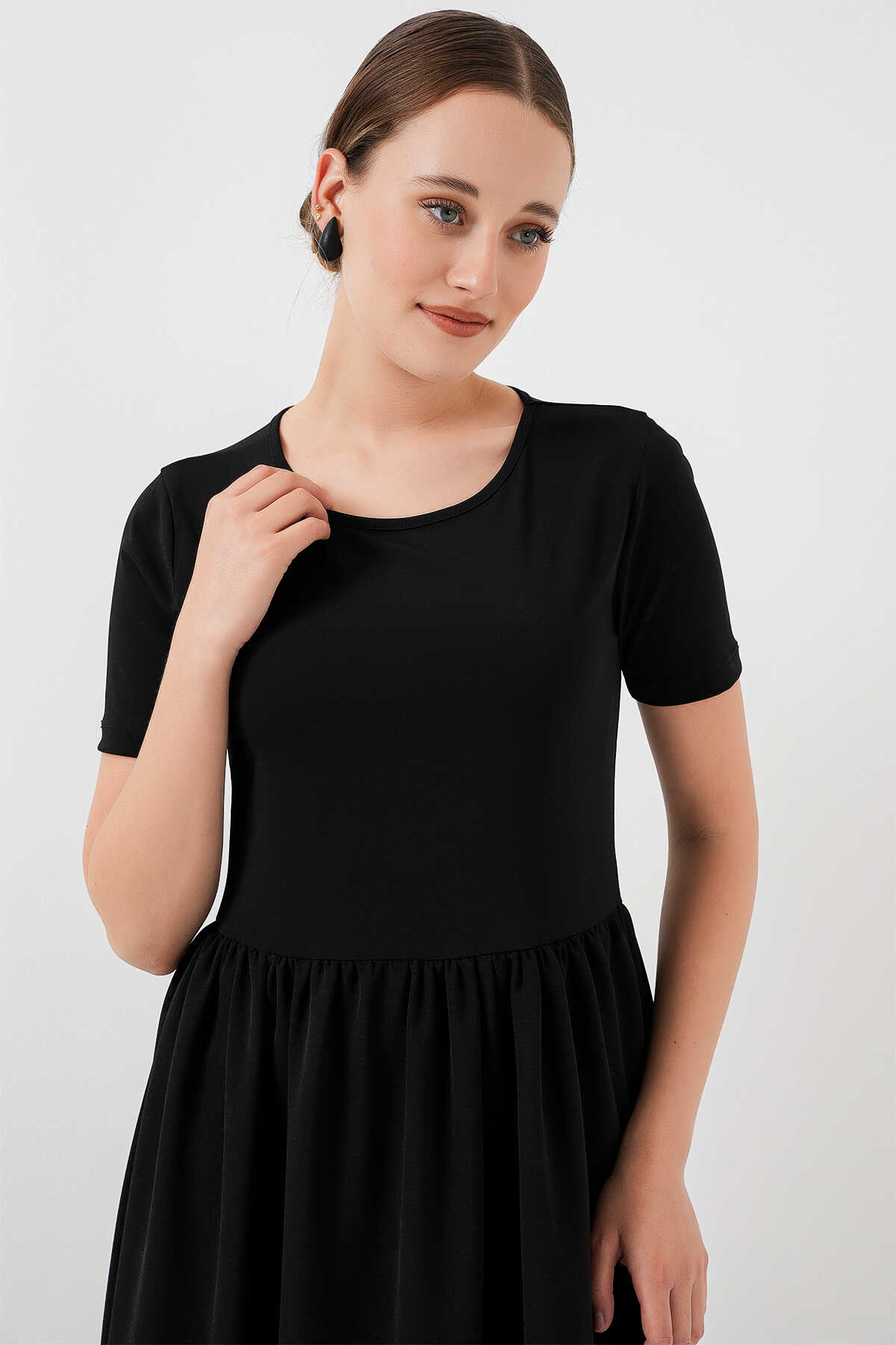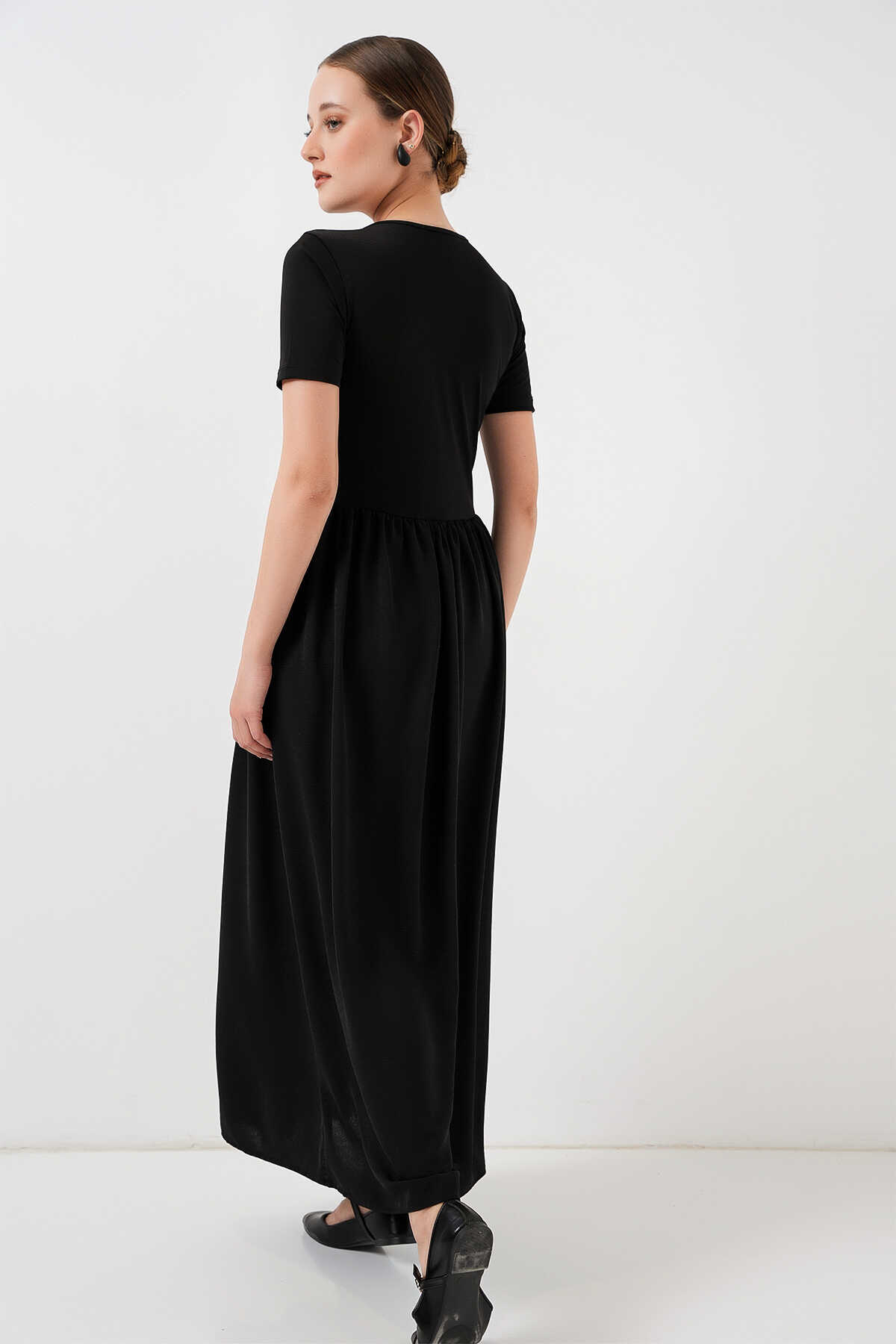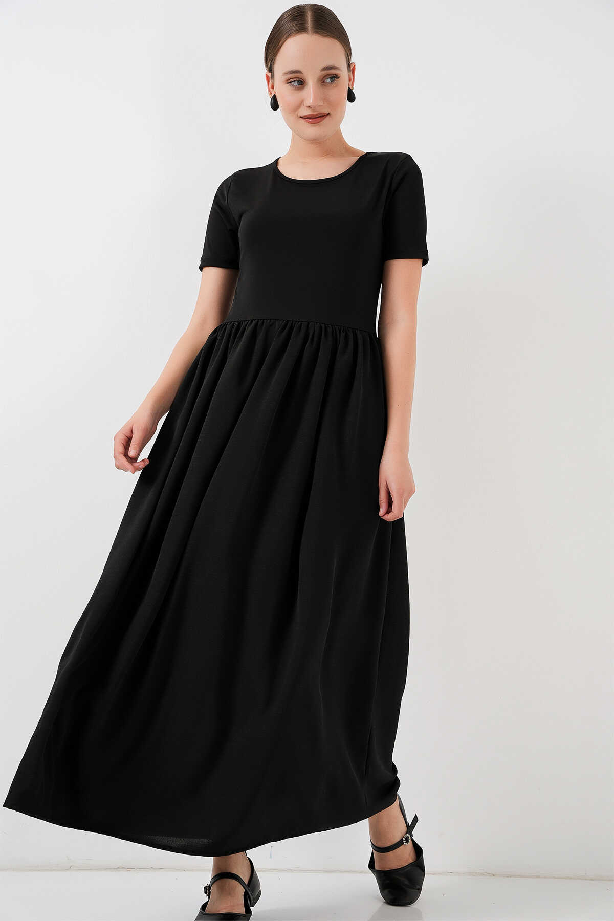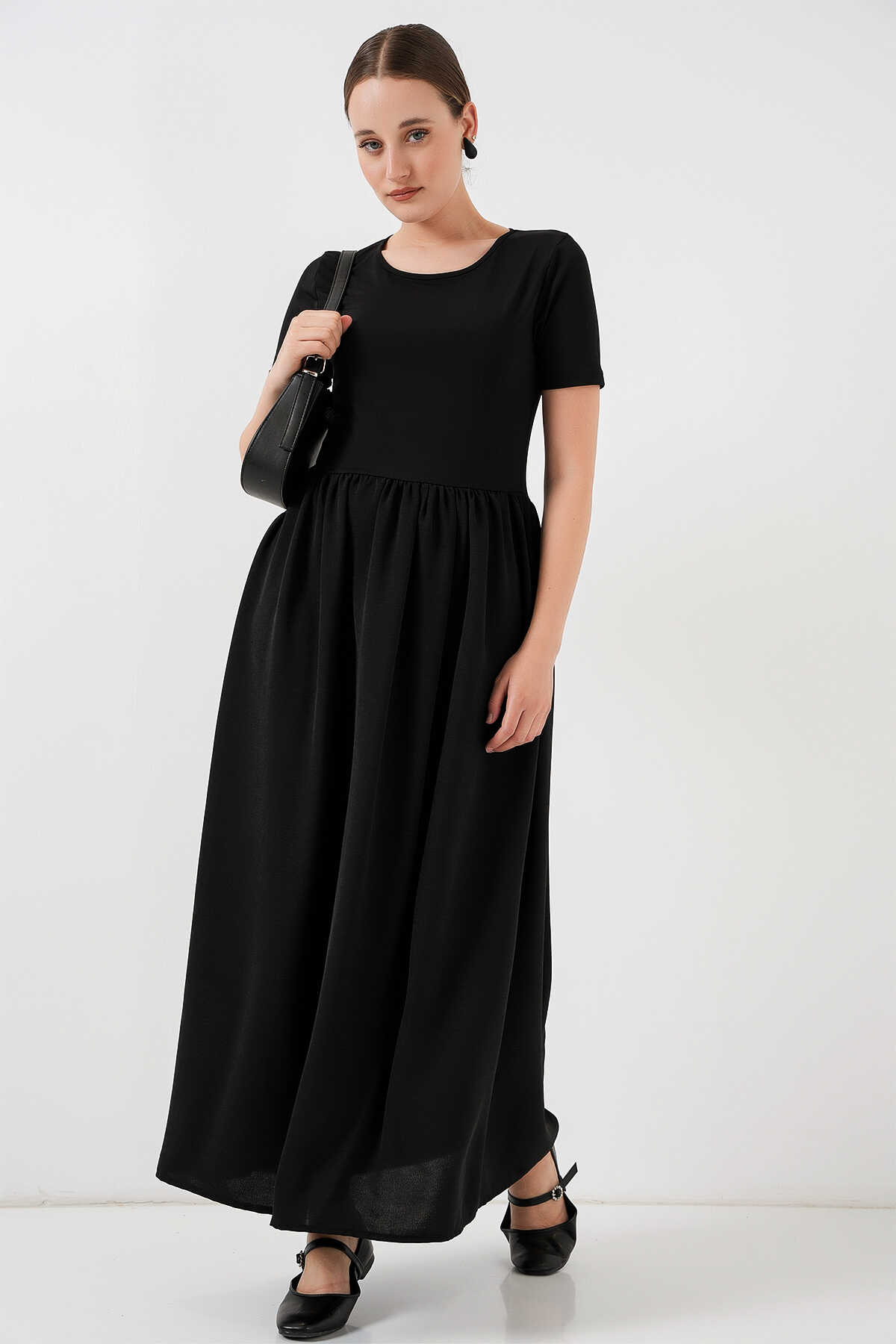 Kısa Kol Uzun Elbise 2551 - Siyah - Kombin