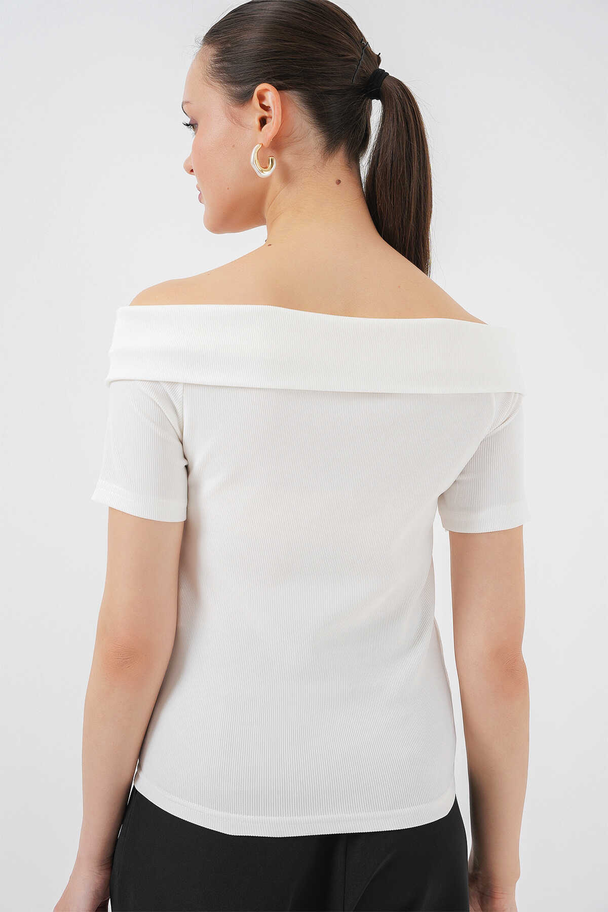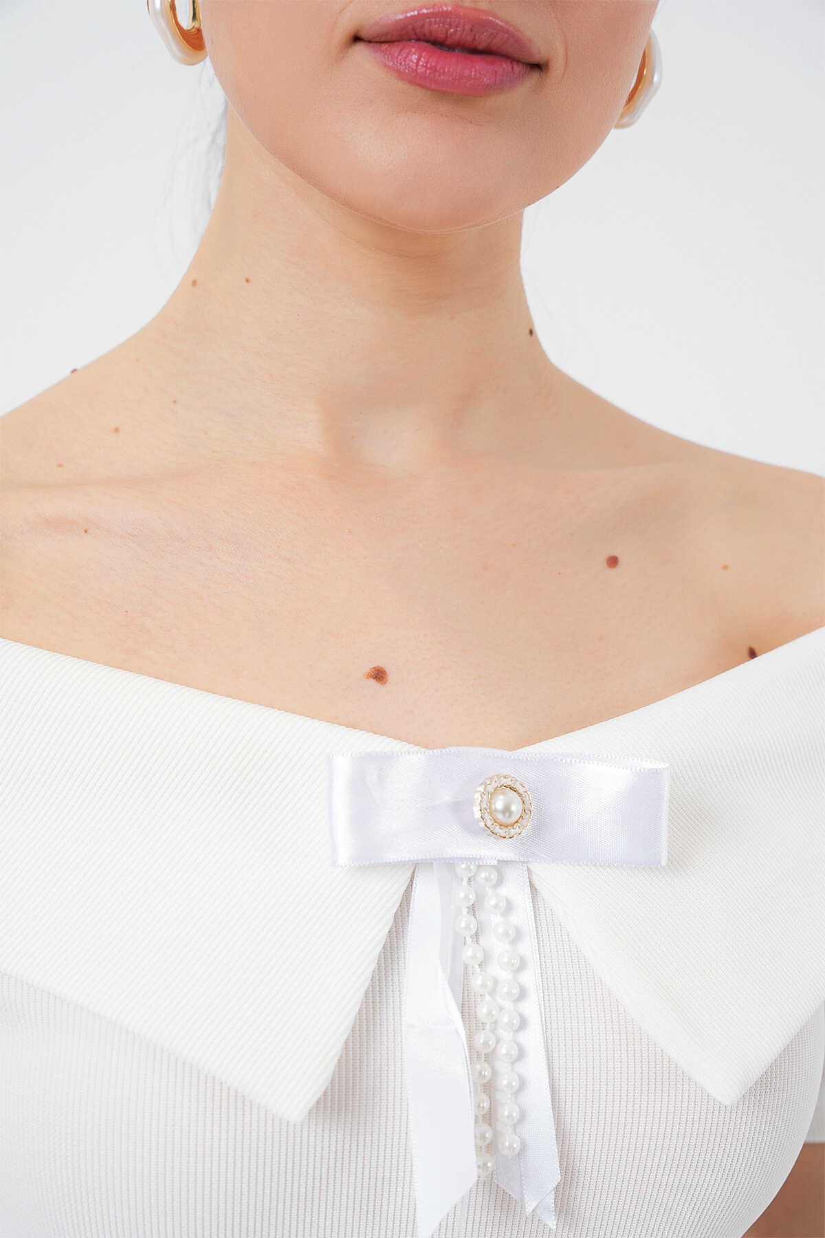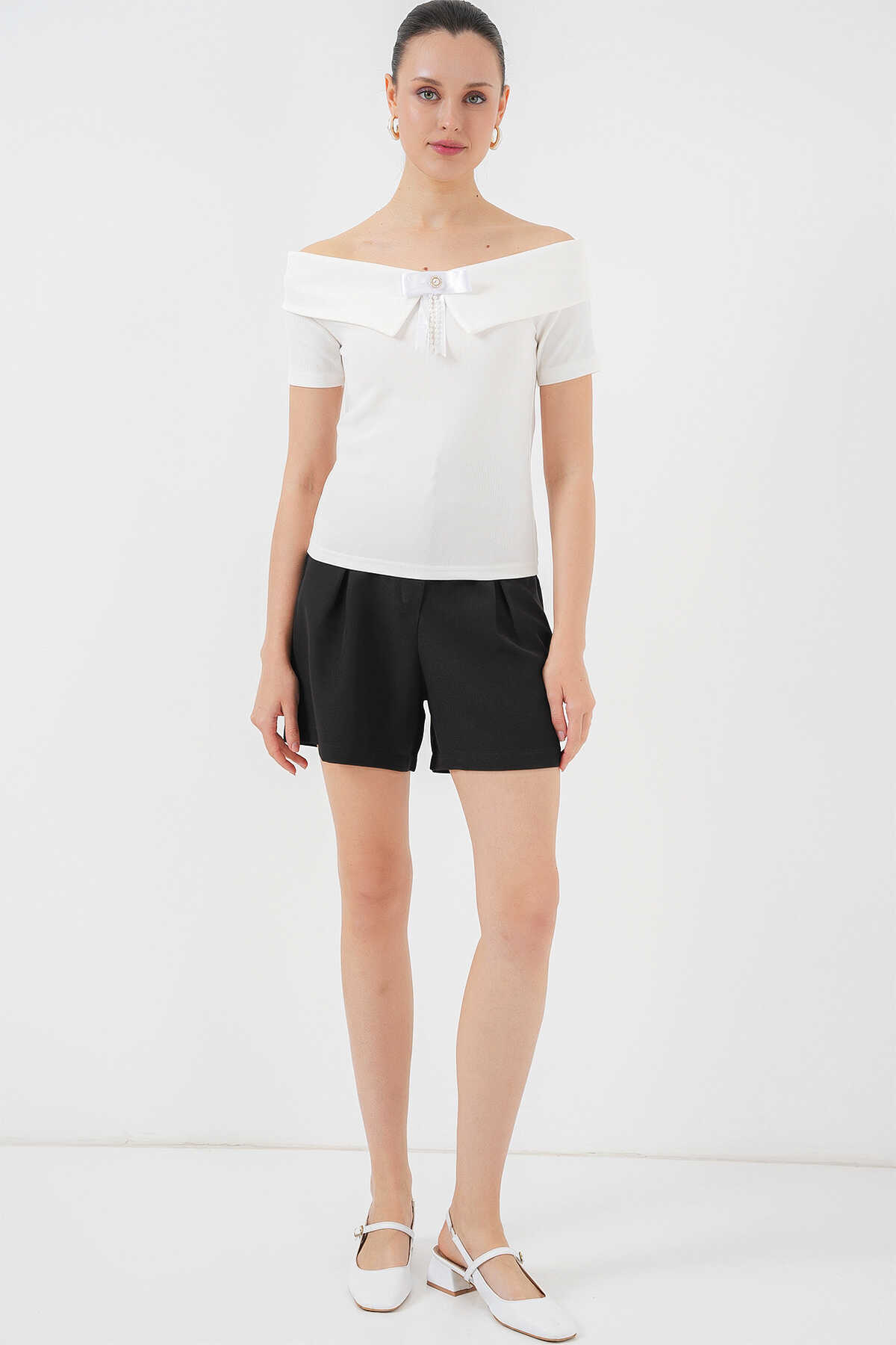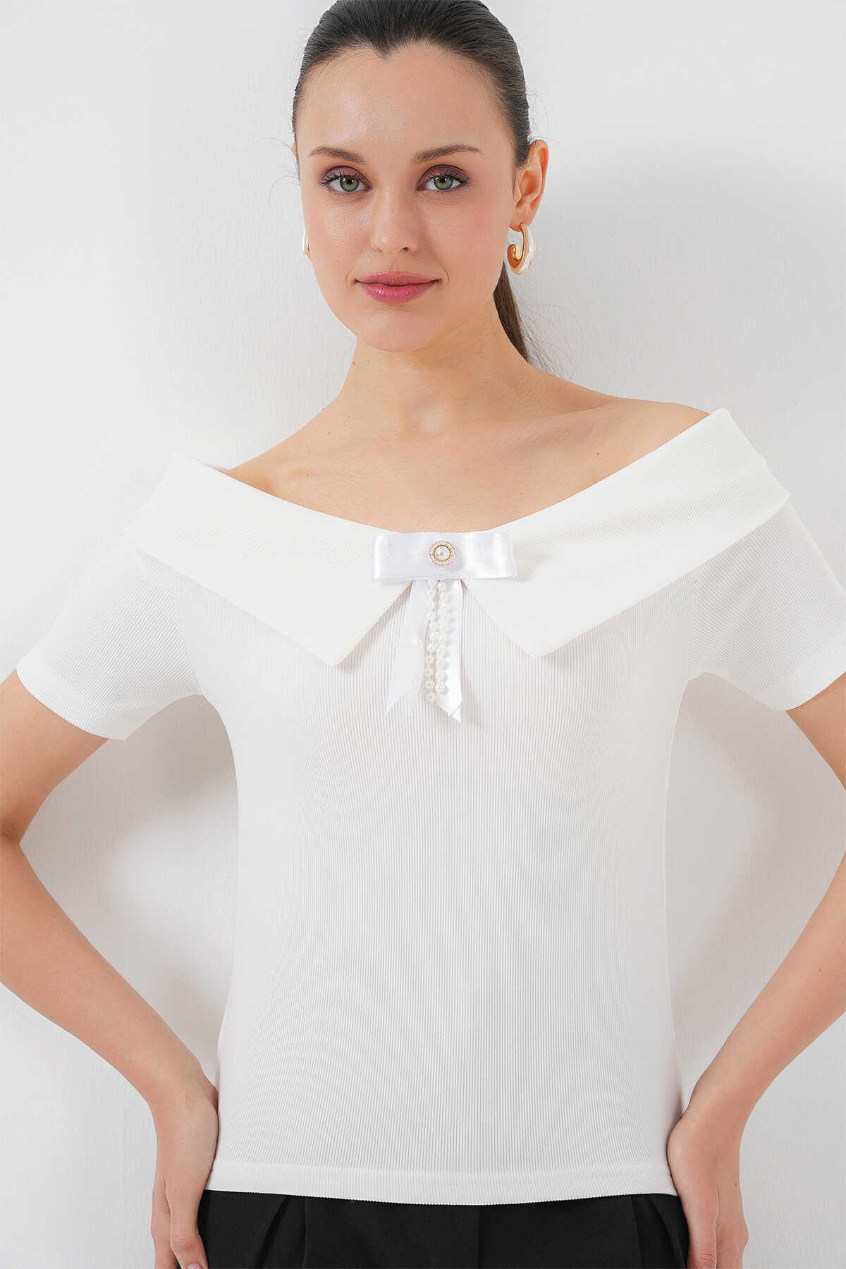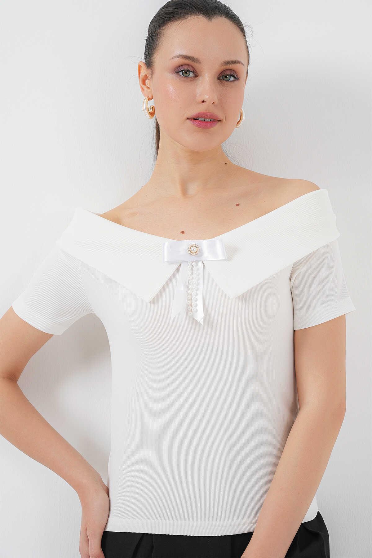 Kurdele Detaylı Örme Bluz 949 - Beyaz - Kombin