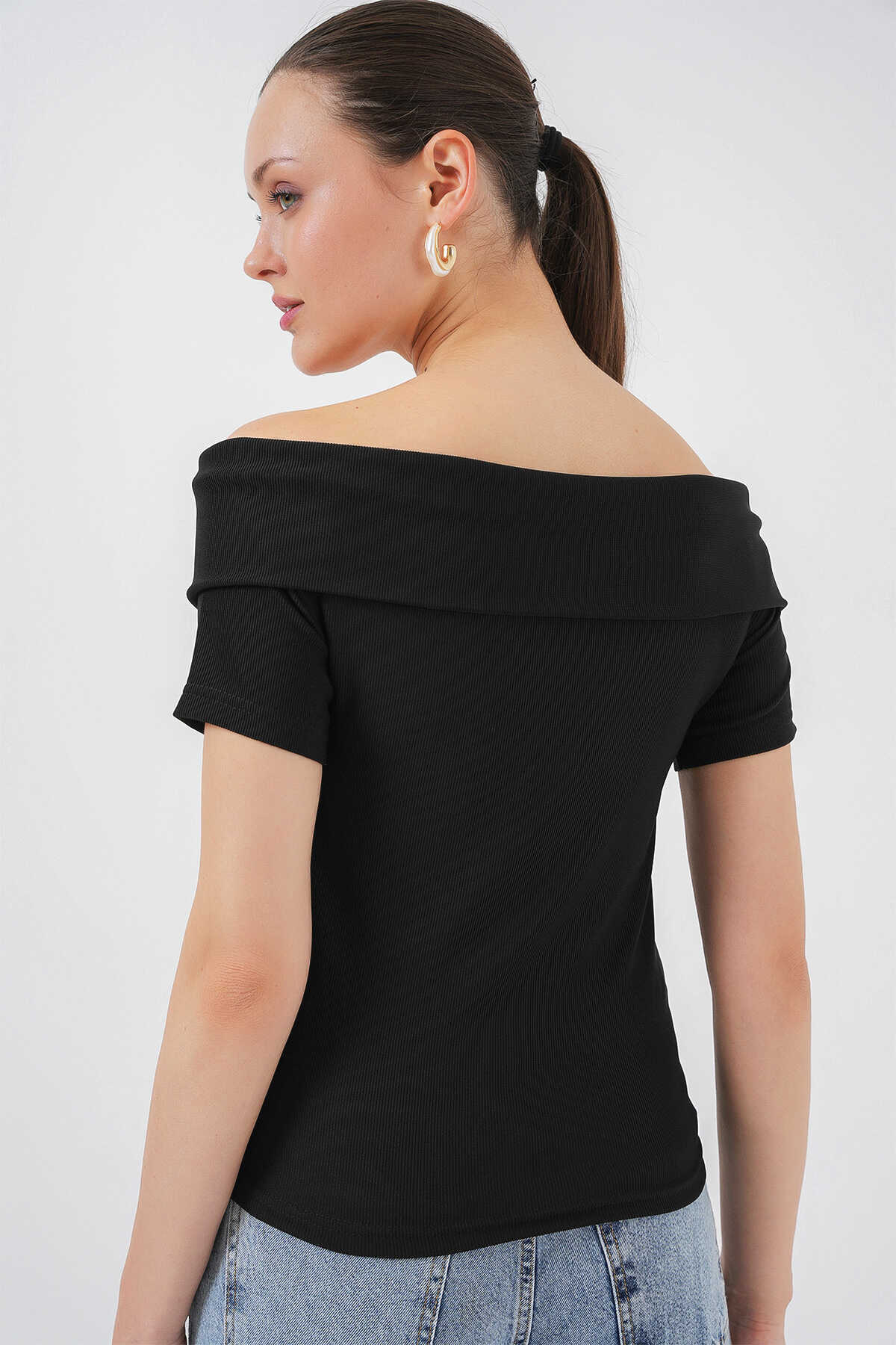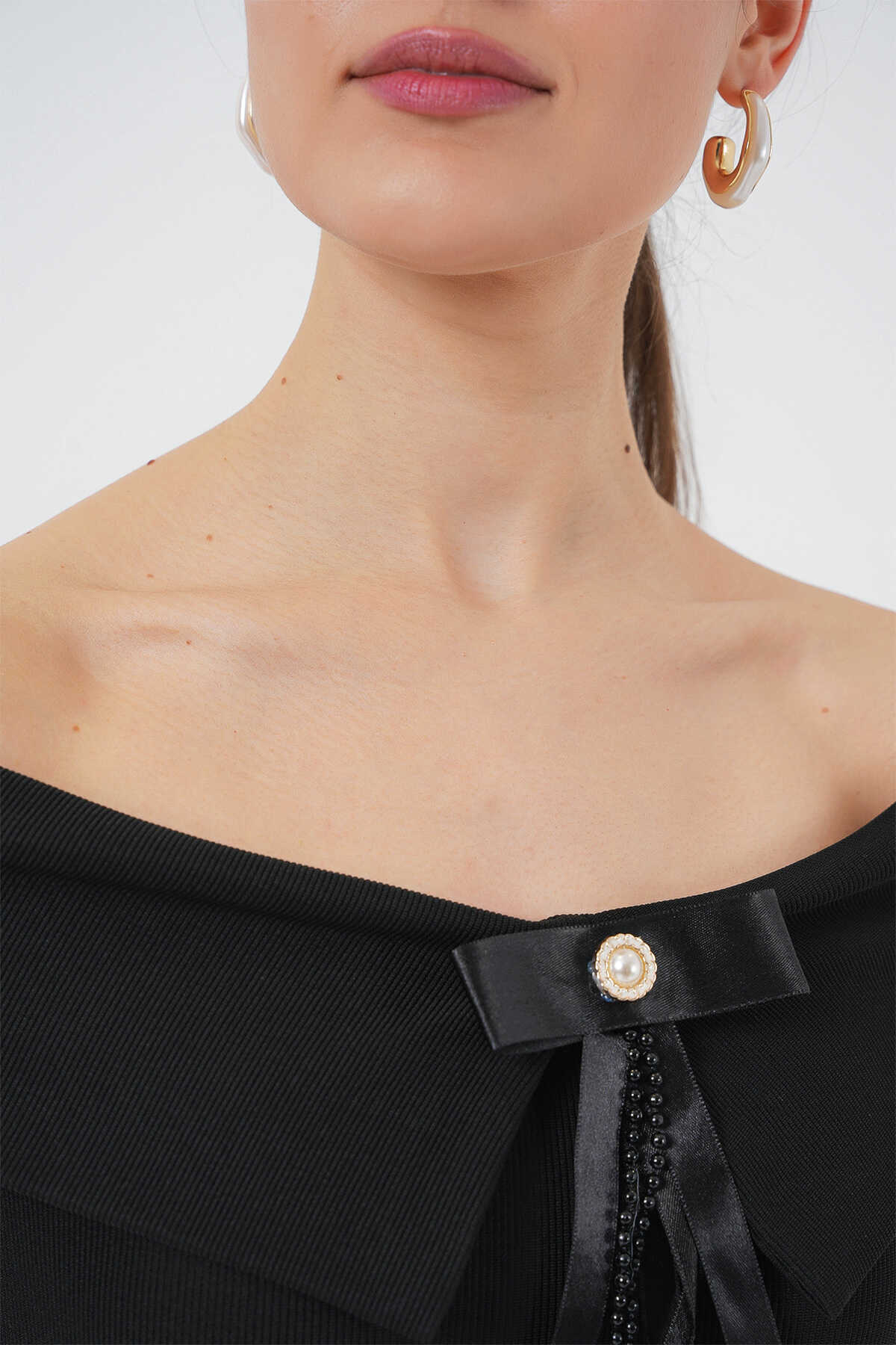 Kurdele Detayli Örme Bluz