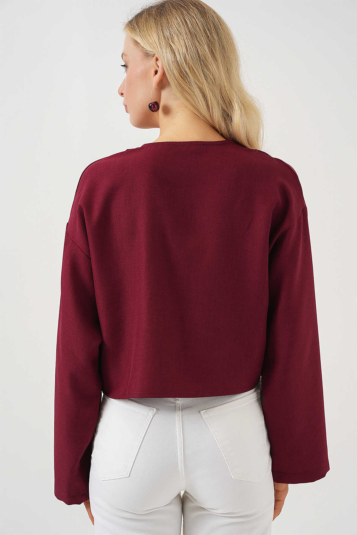 Önü Bağlamalı Keten Kimono 960 - Bordo - Kombin