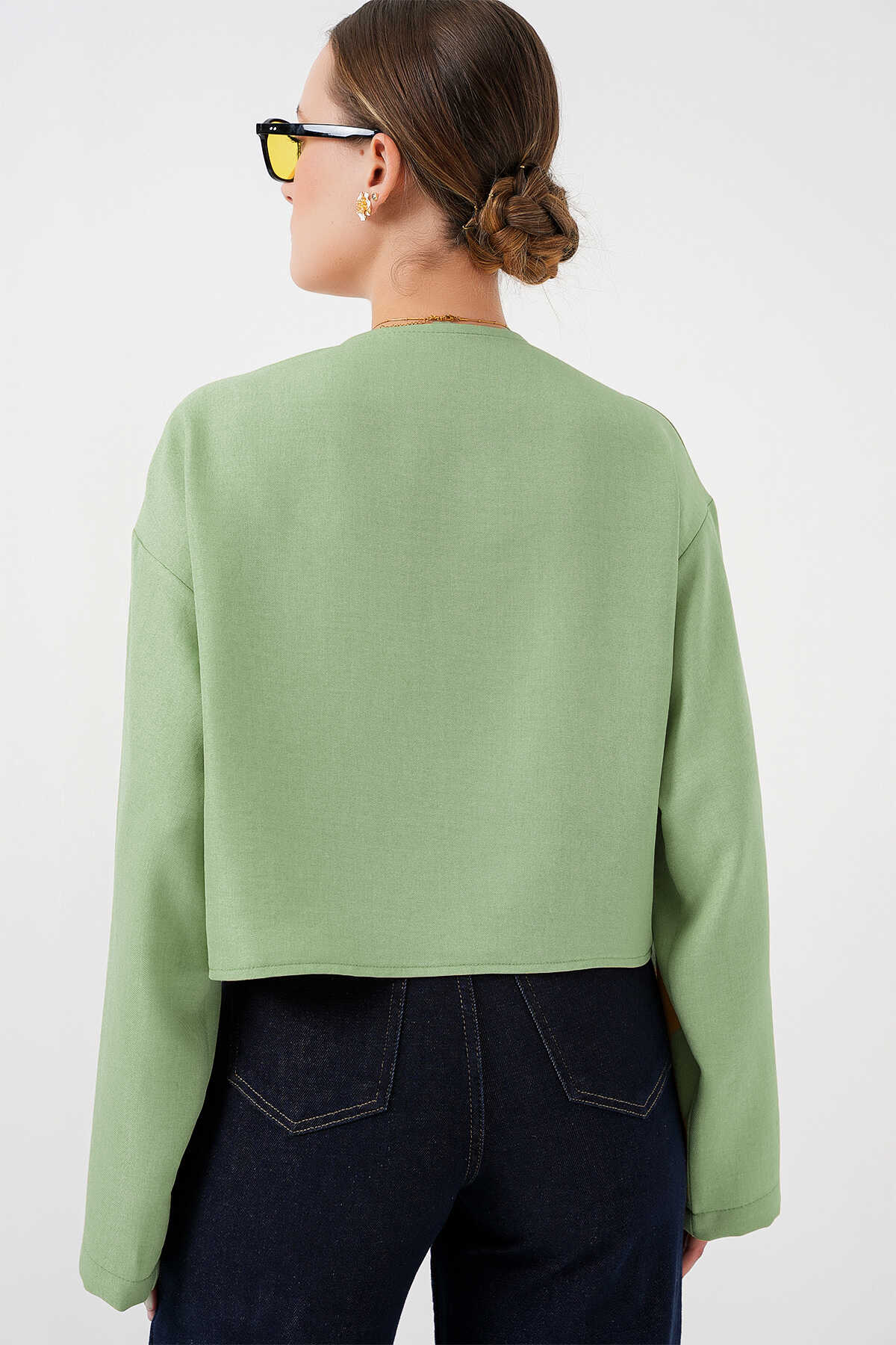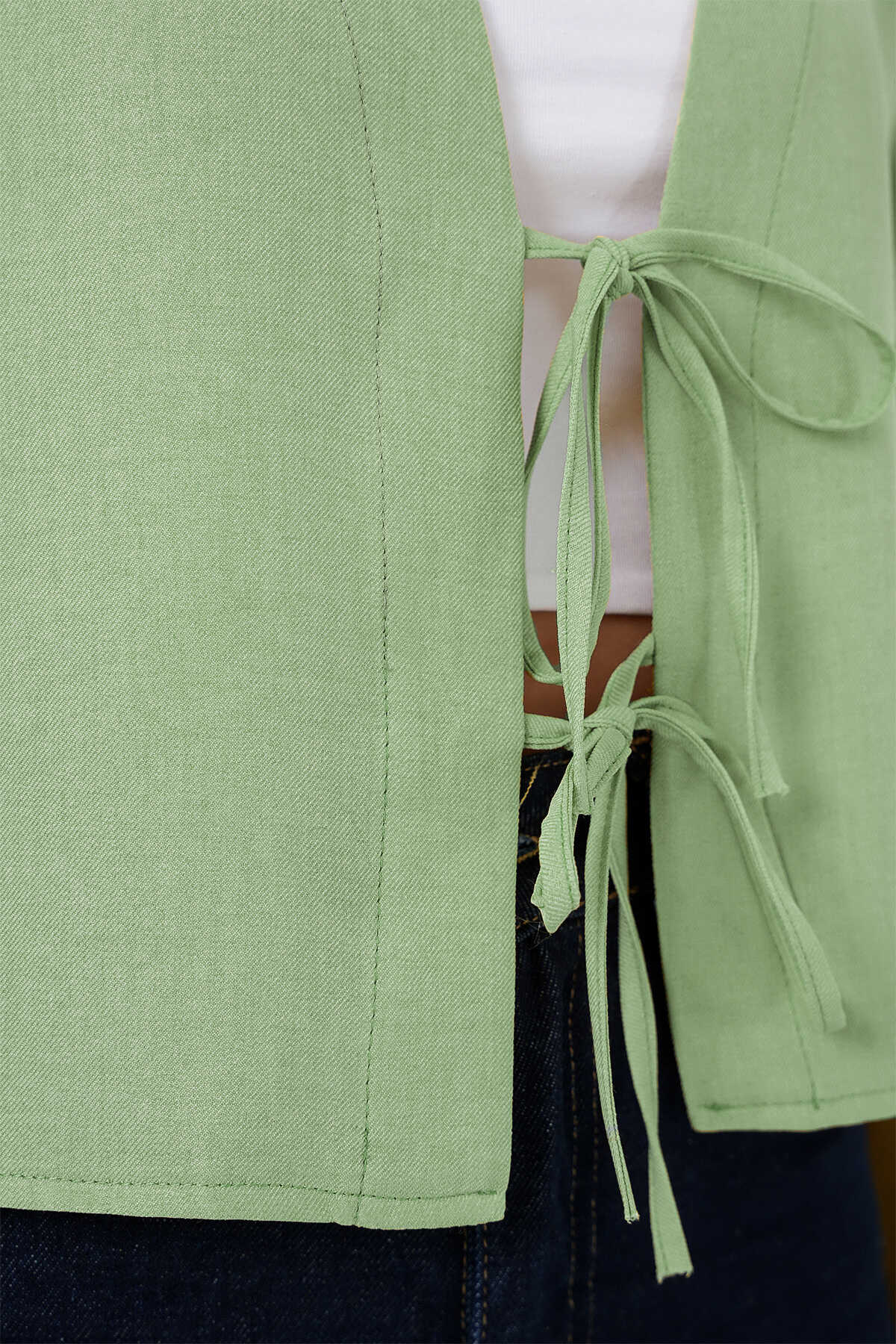Önü Bağlamalı Keten Kimono 960 - E.Yeşil - Kombin
