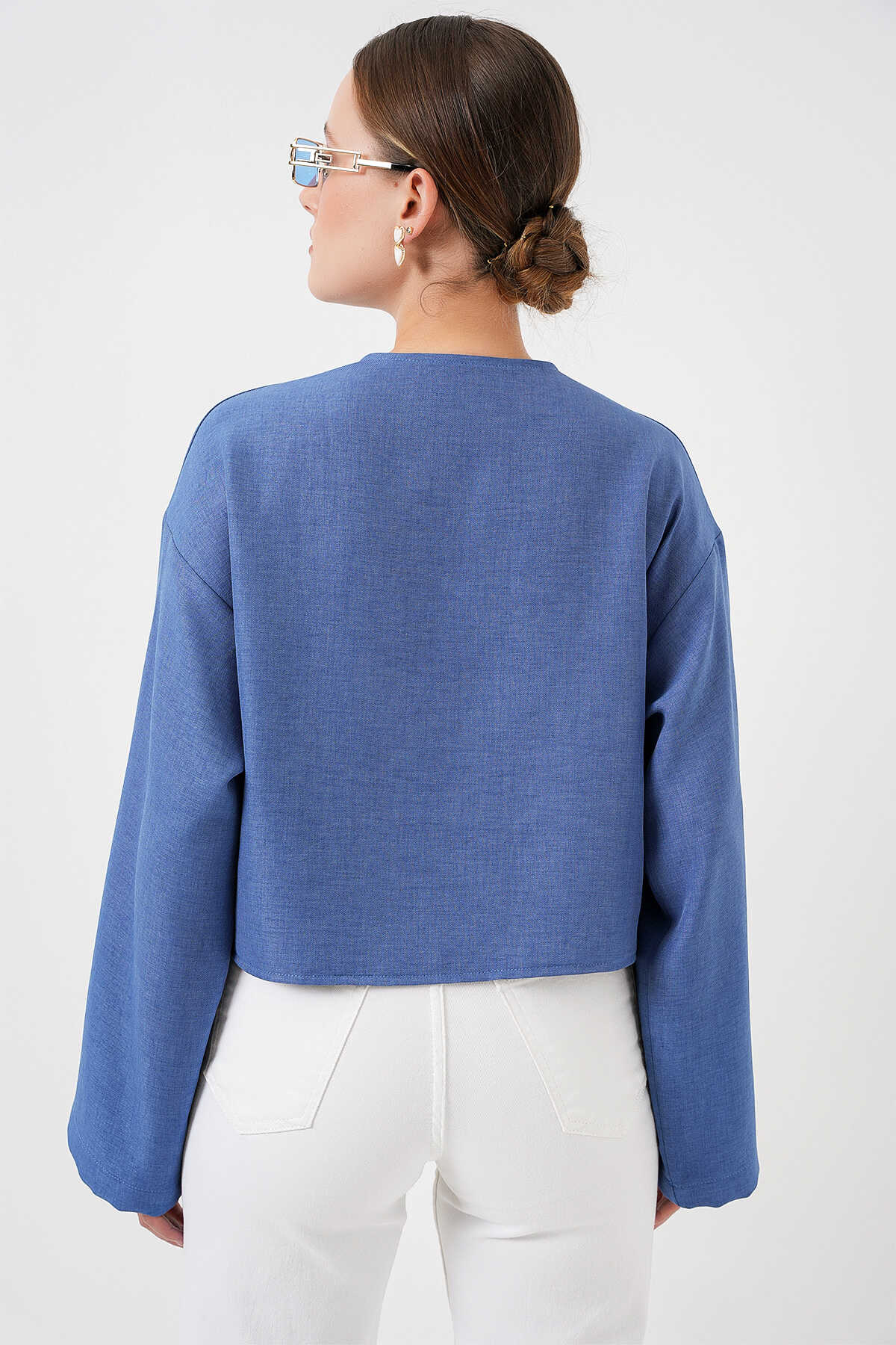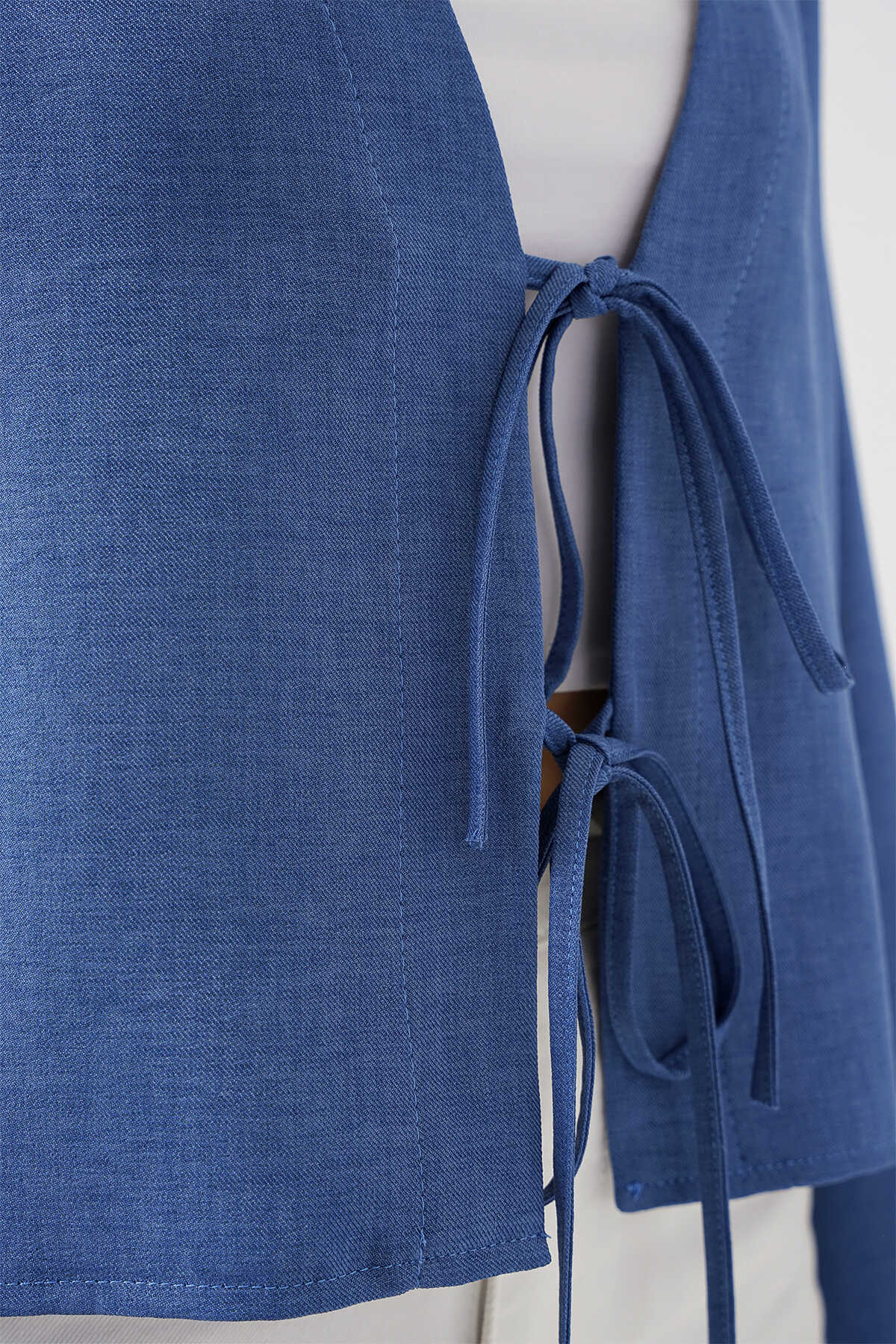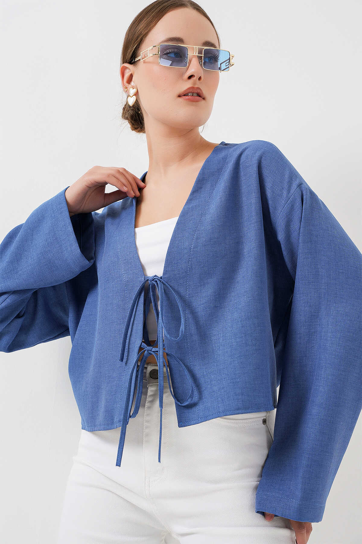 Önü Bağlamalı Keten Kimono 960 - İndigo - Kombin