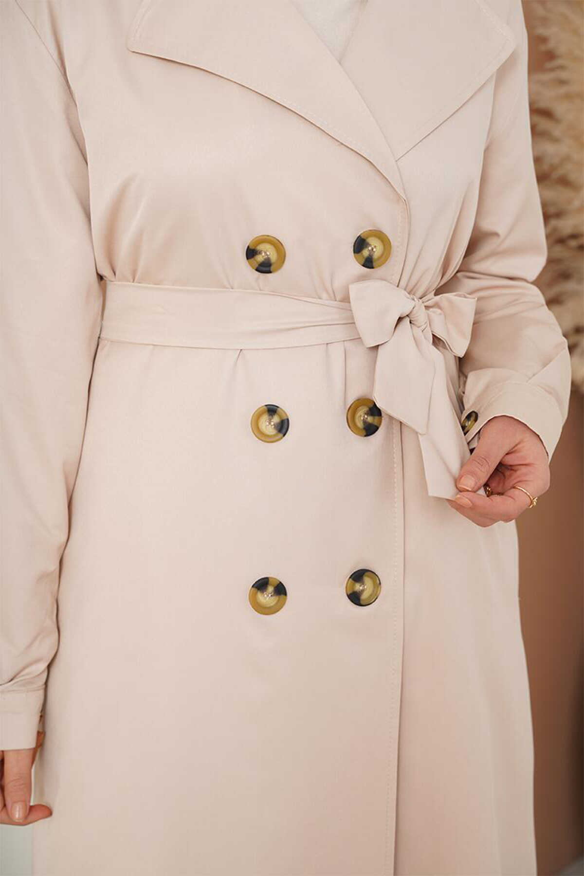 Kruvaze Yaka Trençkot, Kemerli Mevsimlik Trençkot