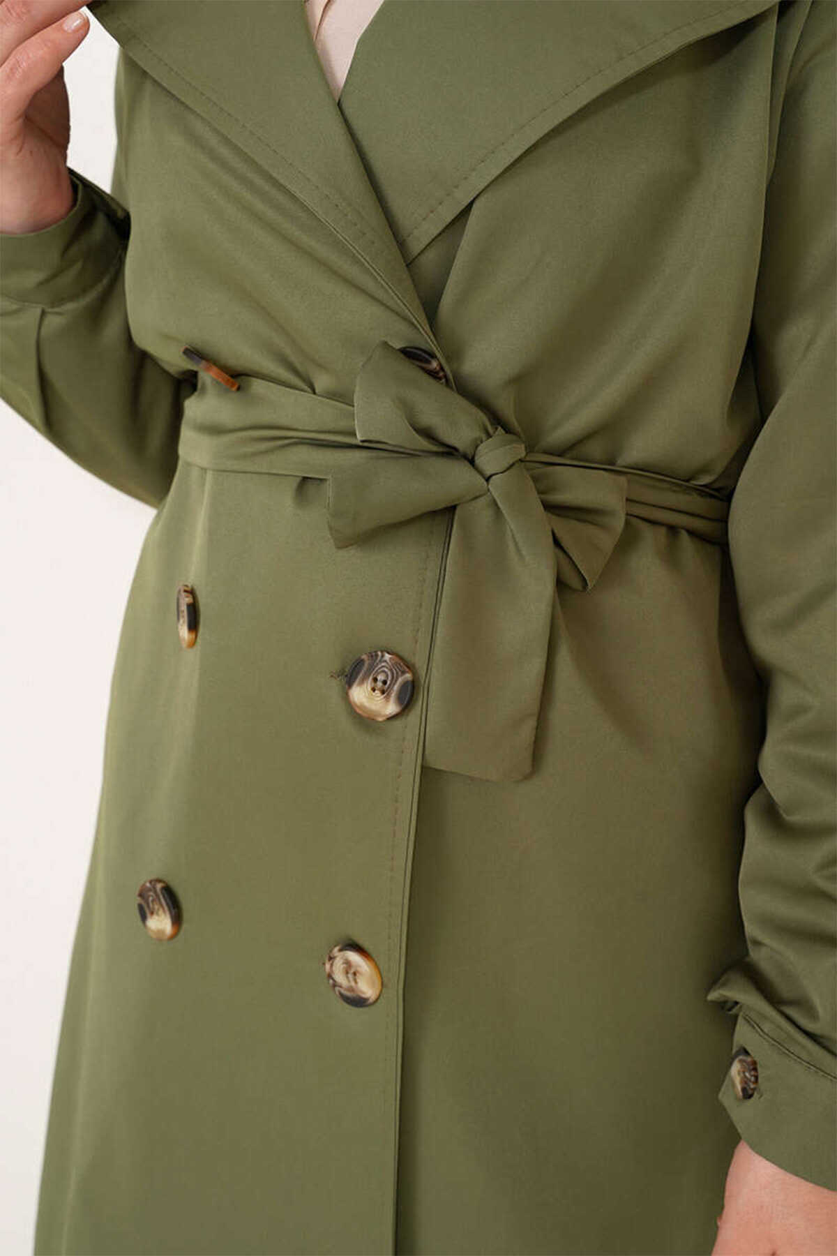 T5853 Kruvaze Yaka Tesettür Trençkot - Haki