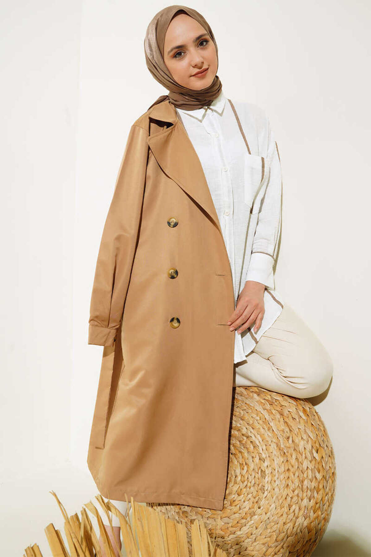 Kruvaze Yaka Trençkot, Kemerli Mevsimlik Trençkot