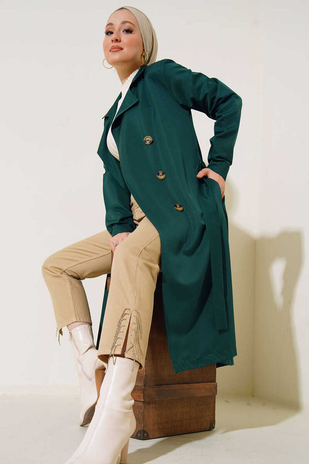 Kruvaze Yaka Trençkot, Kemerli Mevsimlik Trençkot