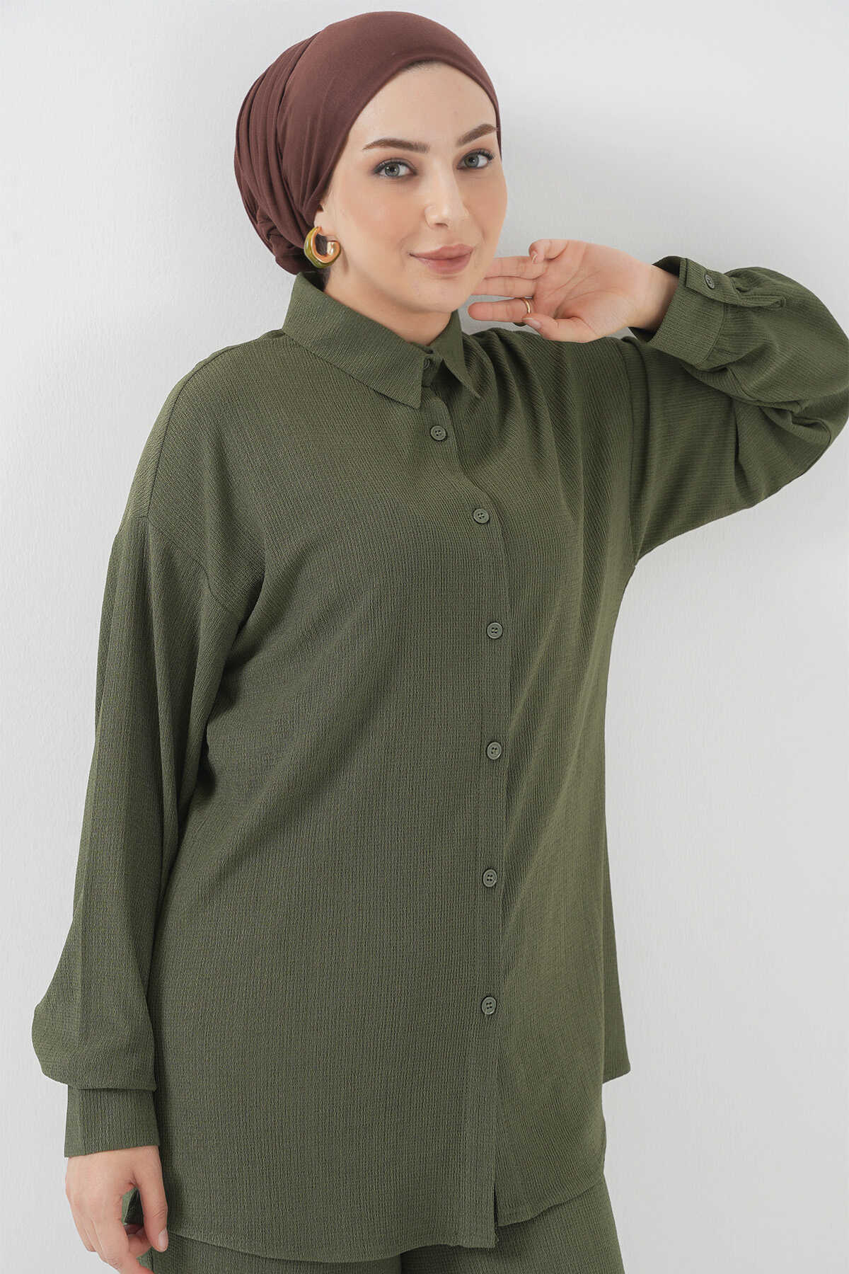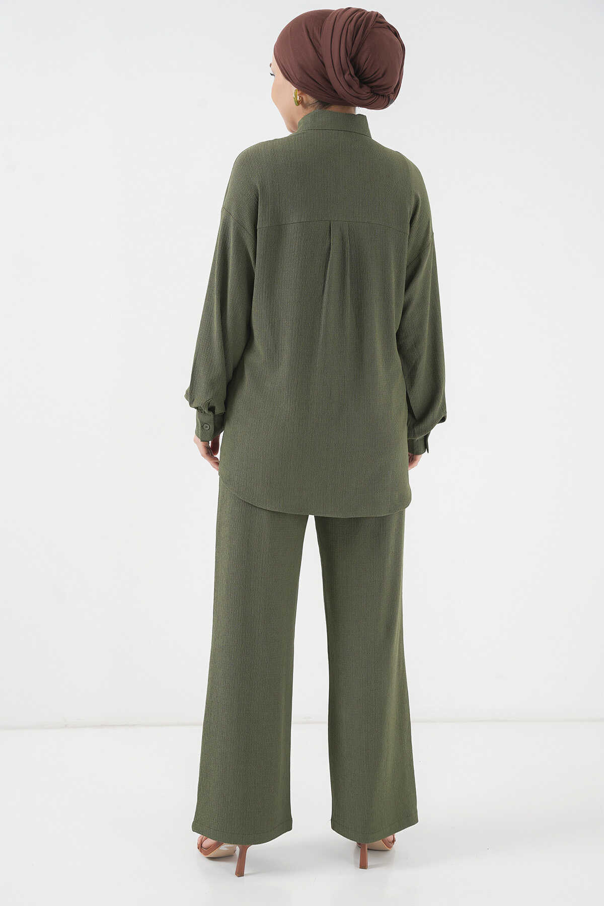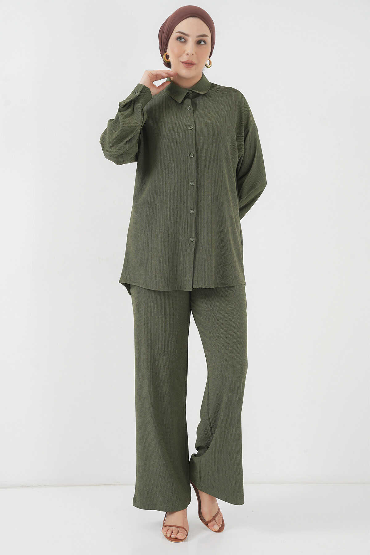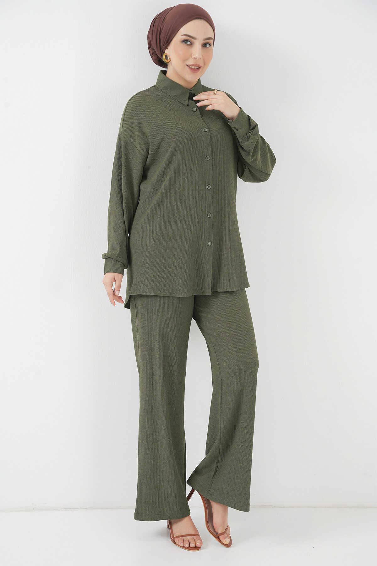 T5858 Örme Tesettür İkili Takım - Haki - Kombin