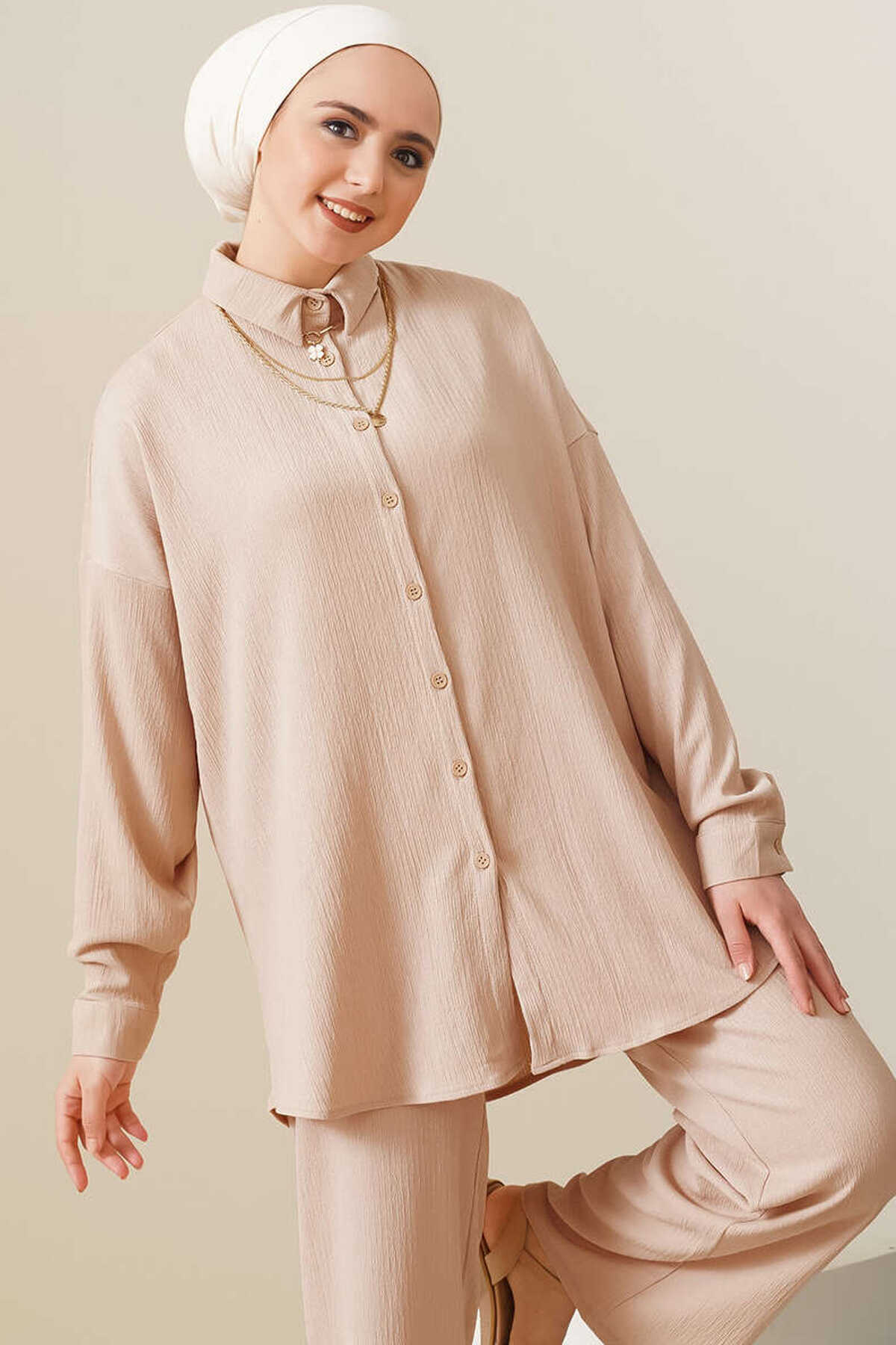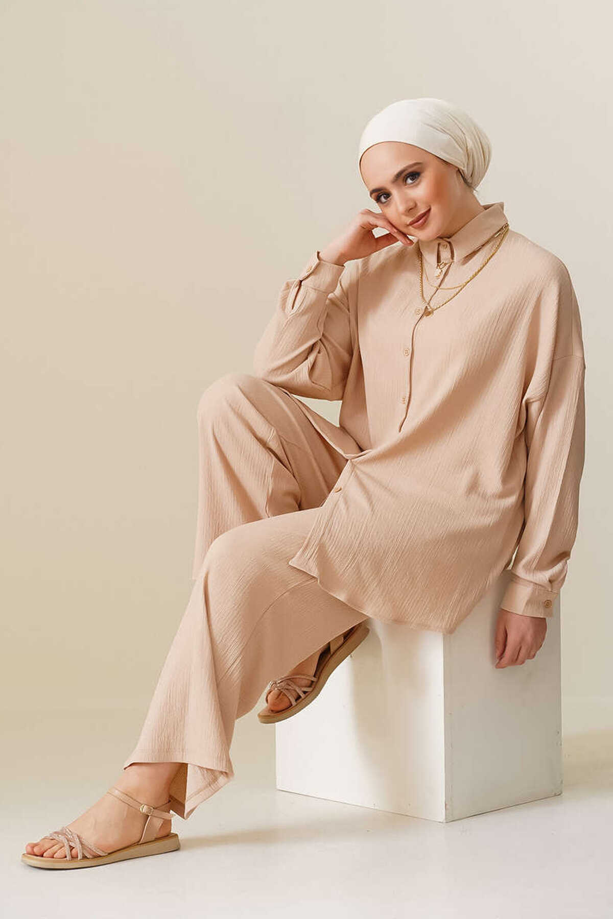 T5858 Örme Tesettür İkili Takım - Bisküvi