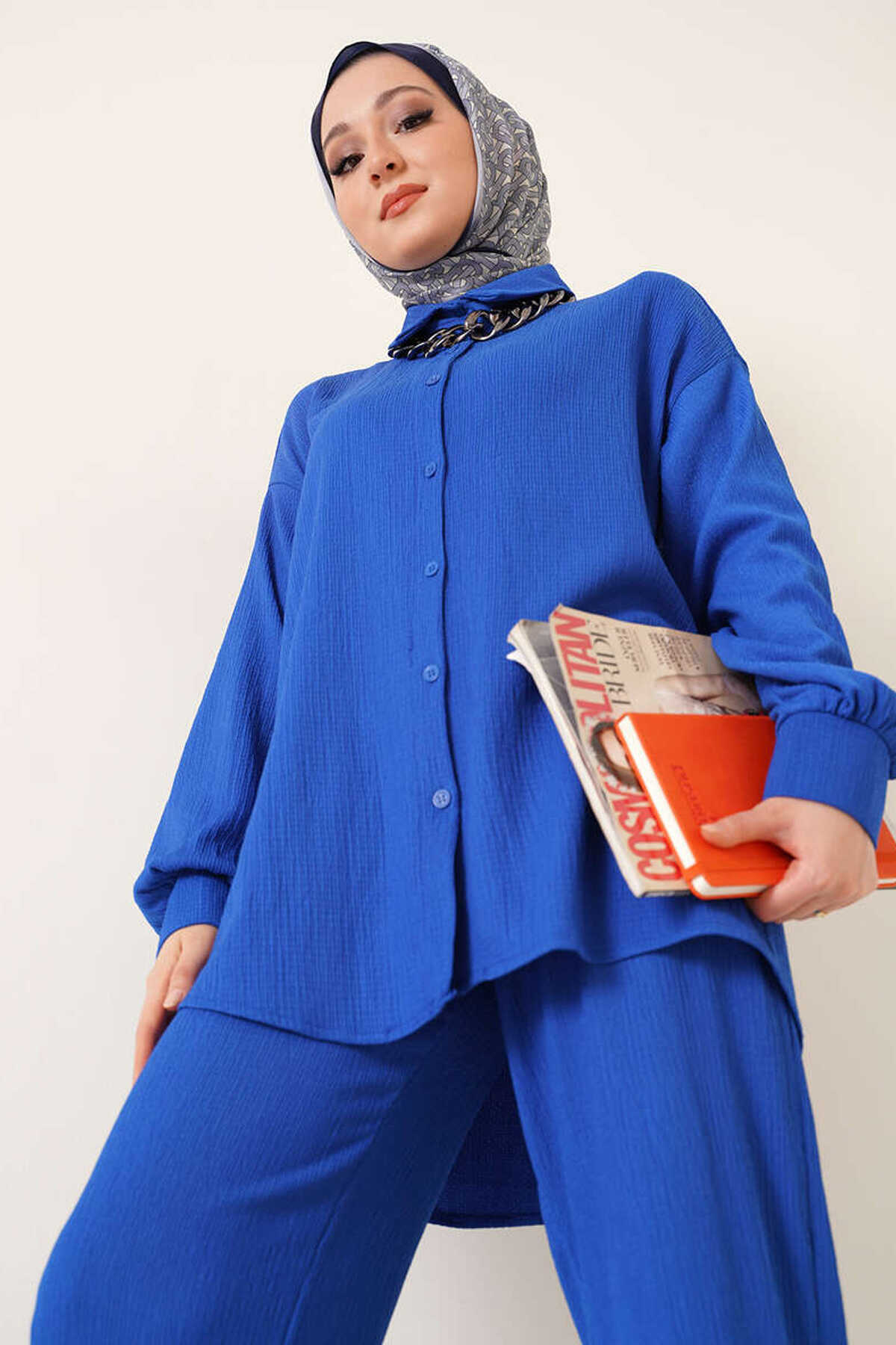 T5858 Örme Tesettür İkili Takım - Saks - Kombin