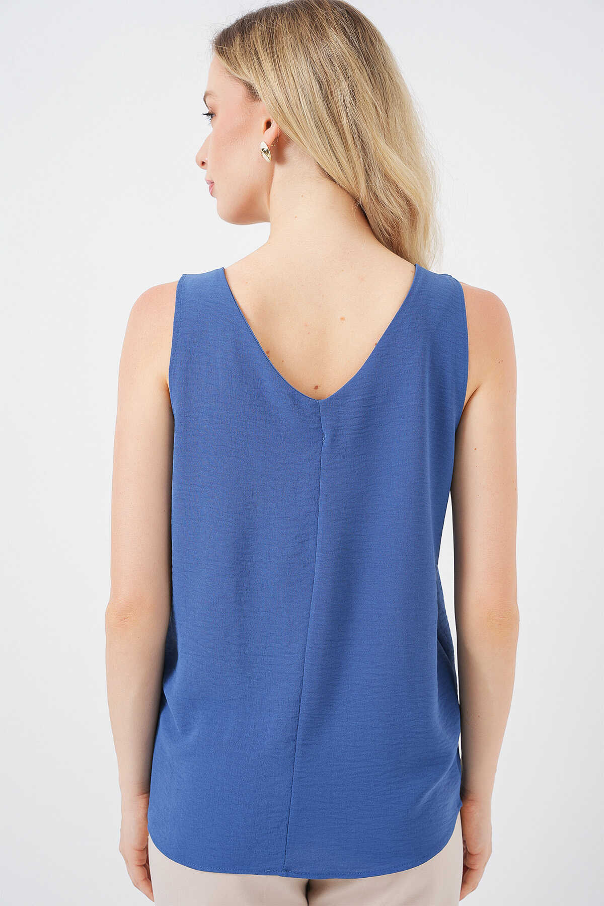 V Yaka Sıfır Kol Bluz 950 - İndigo - Kombin