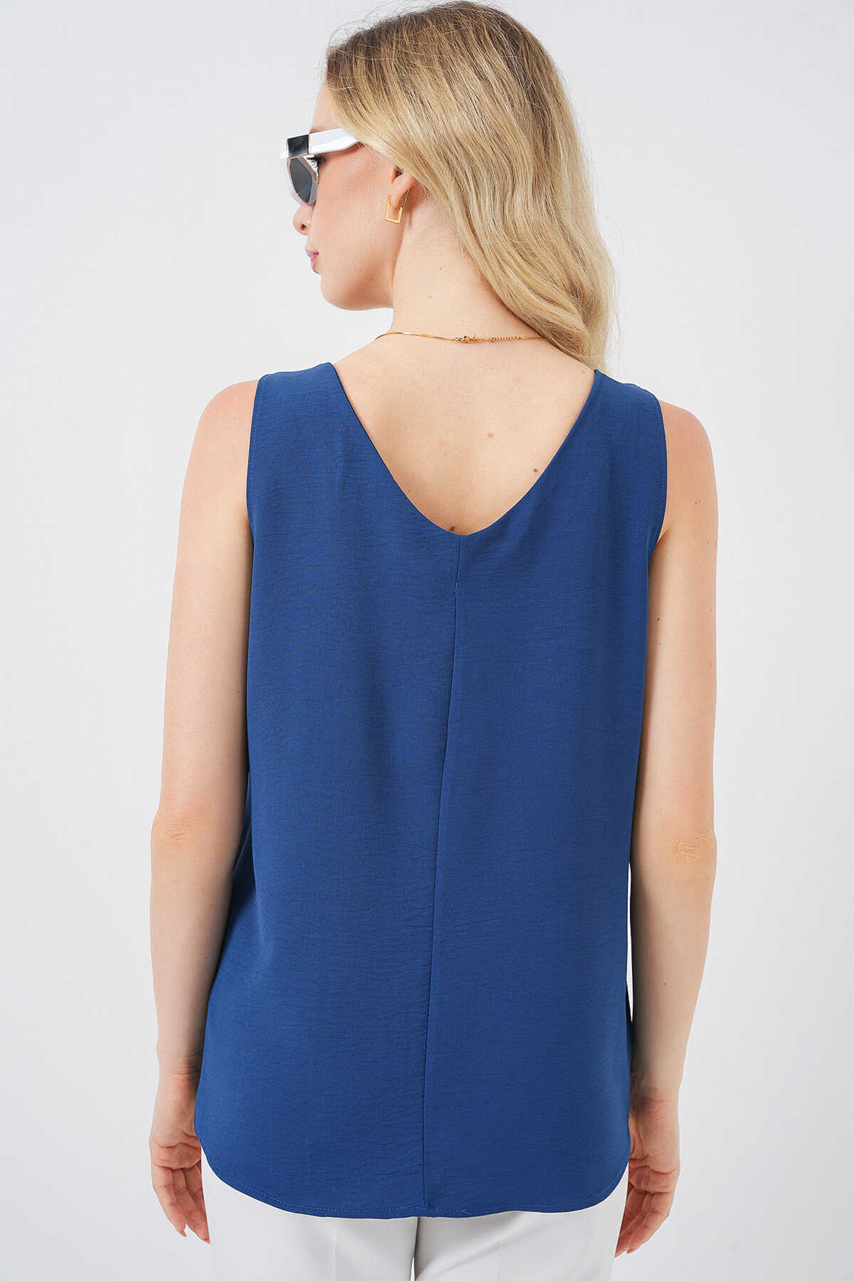 V Yaka Sıfır Kol Bluz 950 - Saks